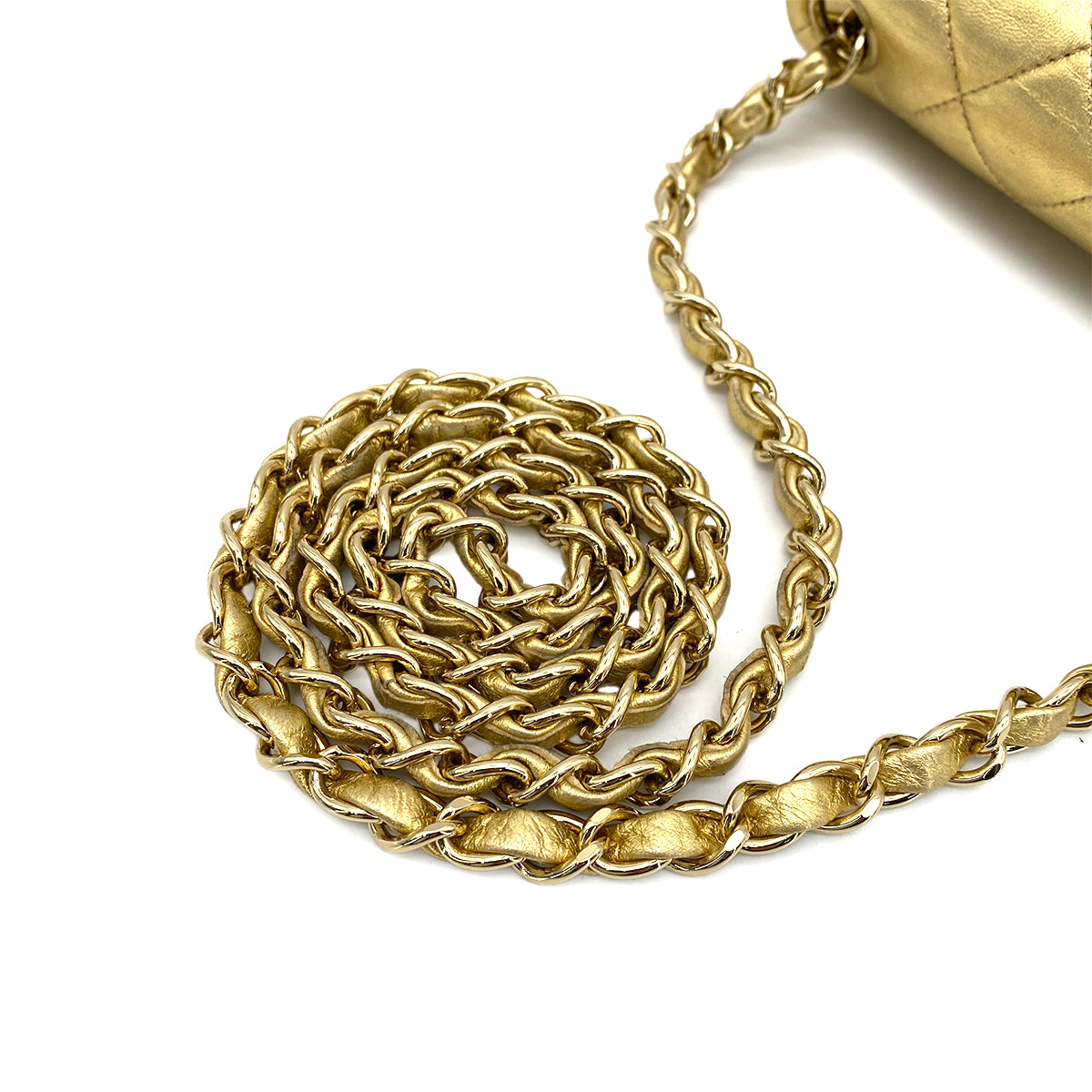 CHANEL VINTAGE MINI SQUARE 17 CHAIN SHOULDER BAG GOLD LAMB SKIN 90257297