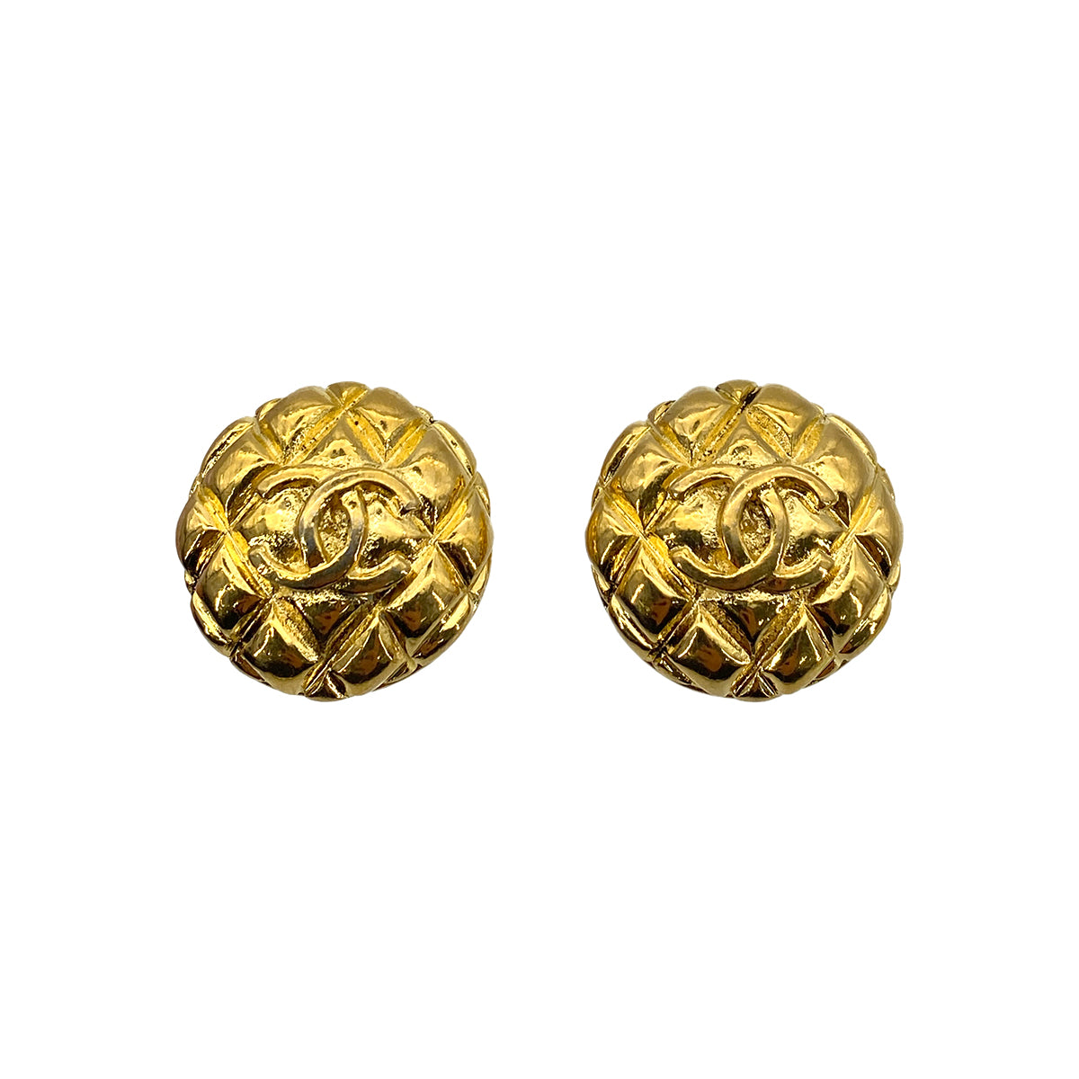 CHANEL VINTAGE EARRINGS MATELASSE ROUND COCOMARK ACCESSORY 25 90258157