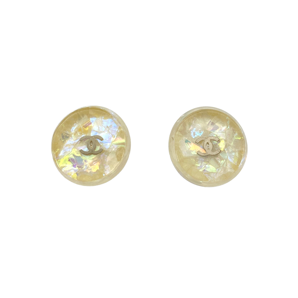 CHANEL VINTAGE EARRINGS ROUND COCOMARK WHITE ACCESSORY 99A 90258170