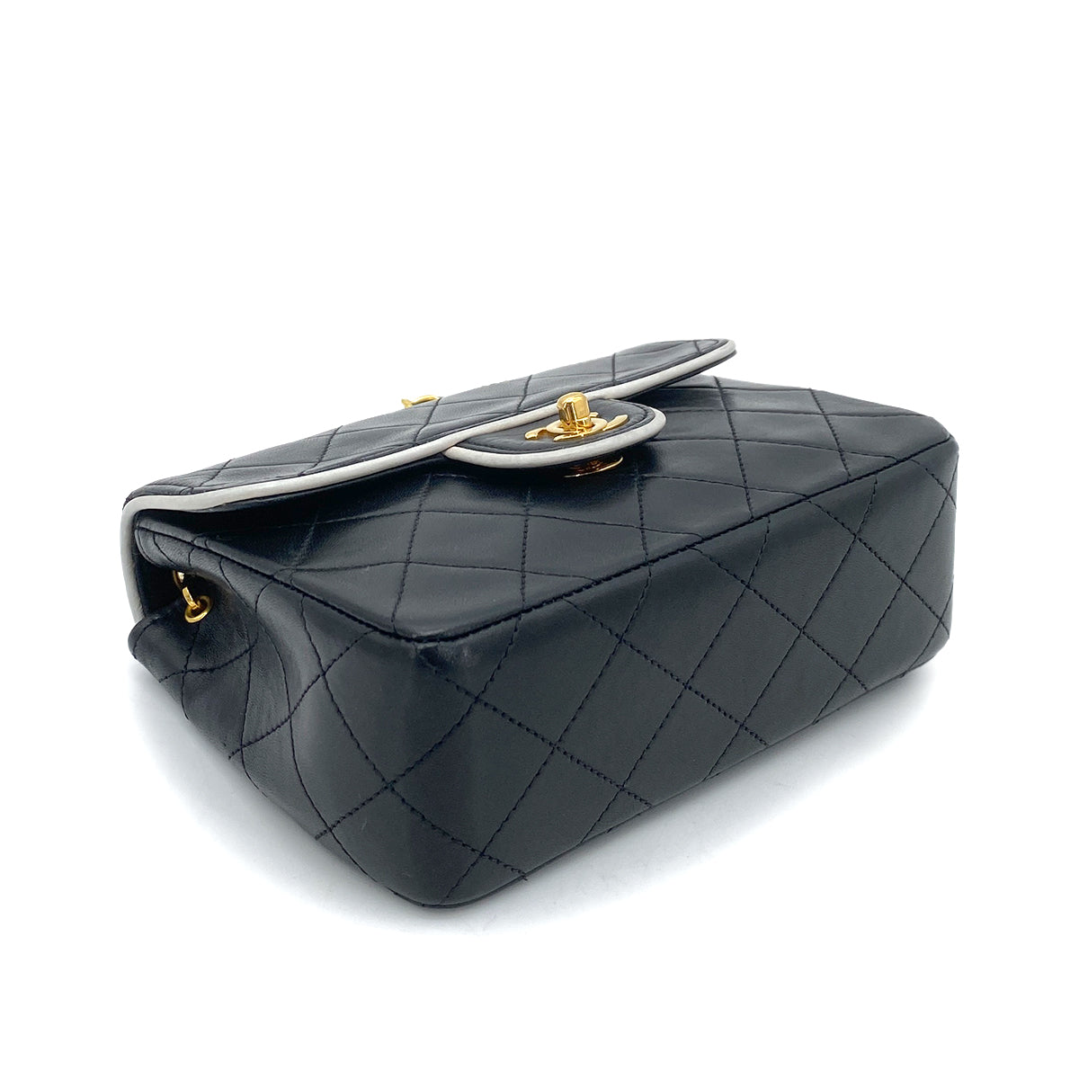 CHANEL VINTAGE MINI SQUARE 17 CHAIN SHOULDER BAG BLACK WHITE LAMB SKIN 90258474