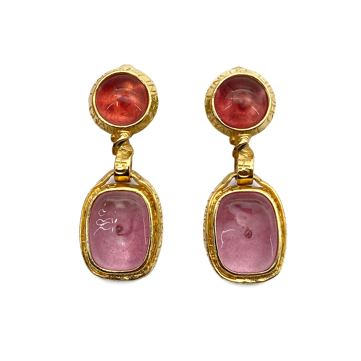 CHANEL VINTAGE EARRINGS GRIPOIX PINK ACCESSORY 96P 90258514