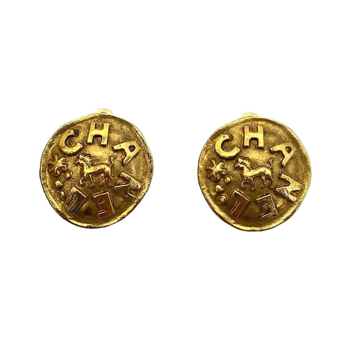 CHANEL VINTAGE EARRINGS LION ROUND ACCESSORY 23 90258862