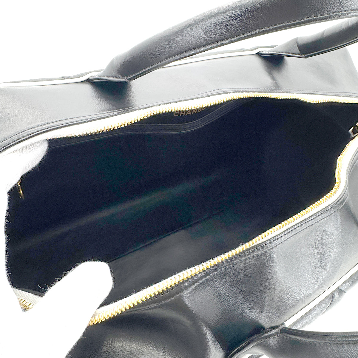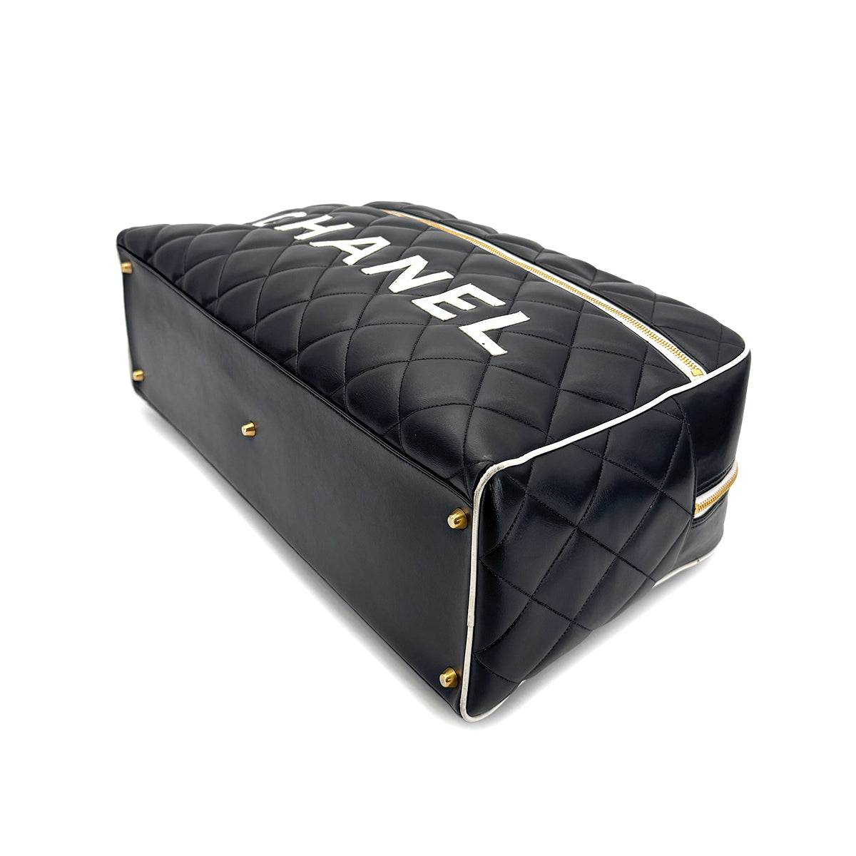 CHANEL VINTAGE MATELASSE LOGO LEATHER BOSTON HAND BAG BLACK 90258901