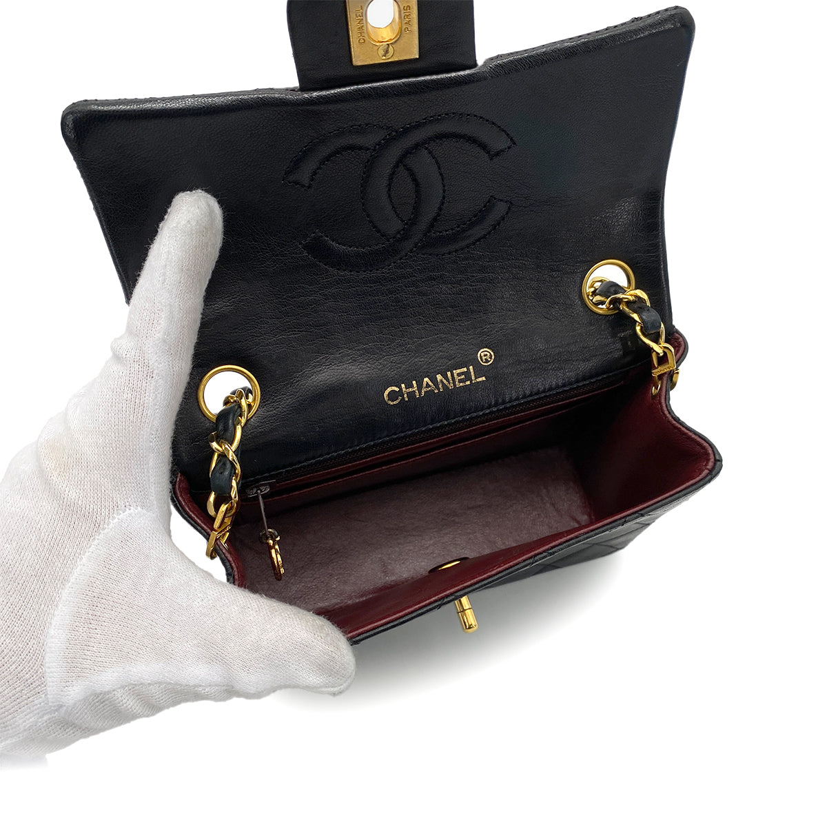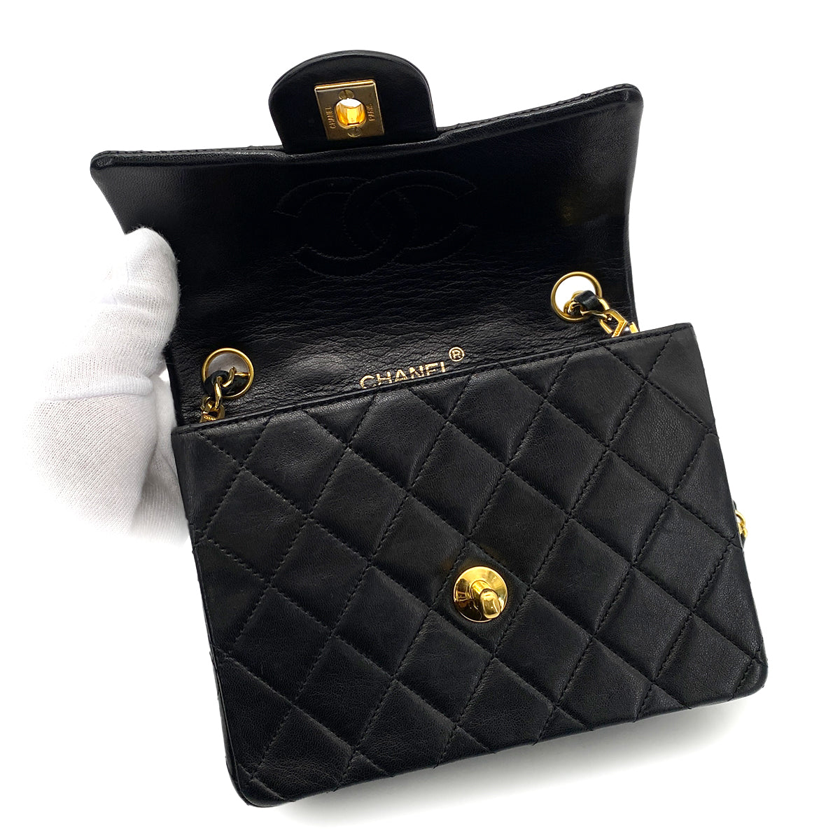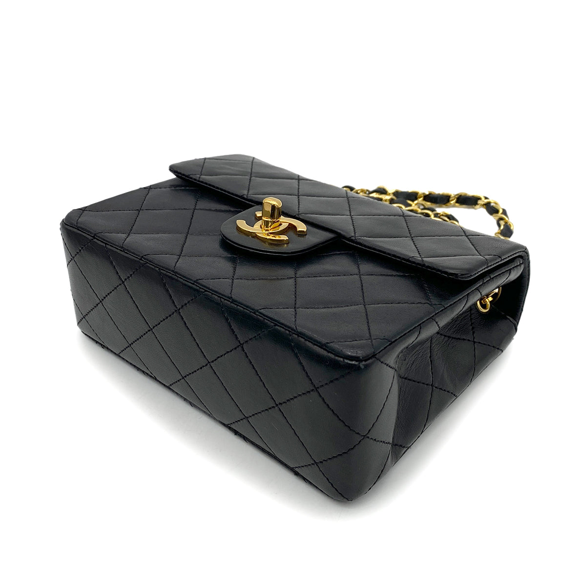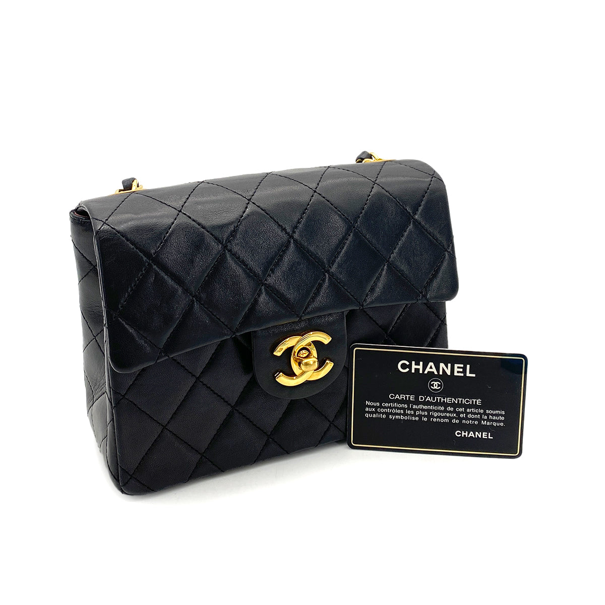 CHANEL VINTAGE MINI SQUARE 17 CHAIN SHOULDER BAG BLACK LAMB SKIN 90258903