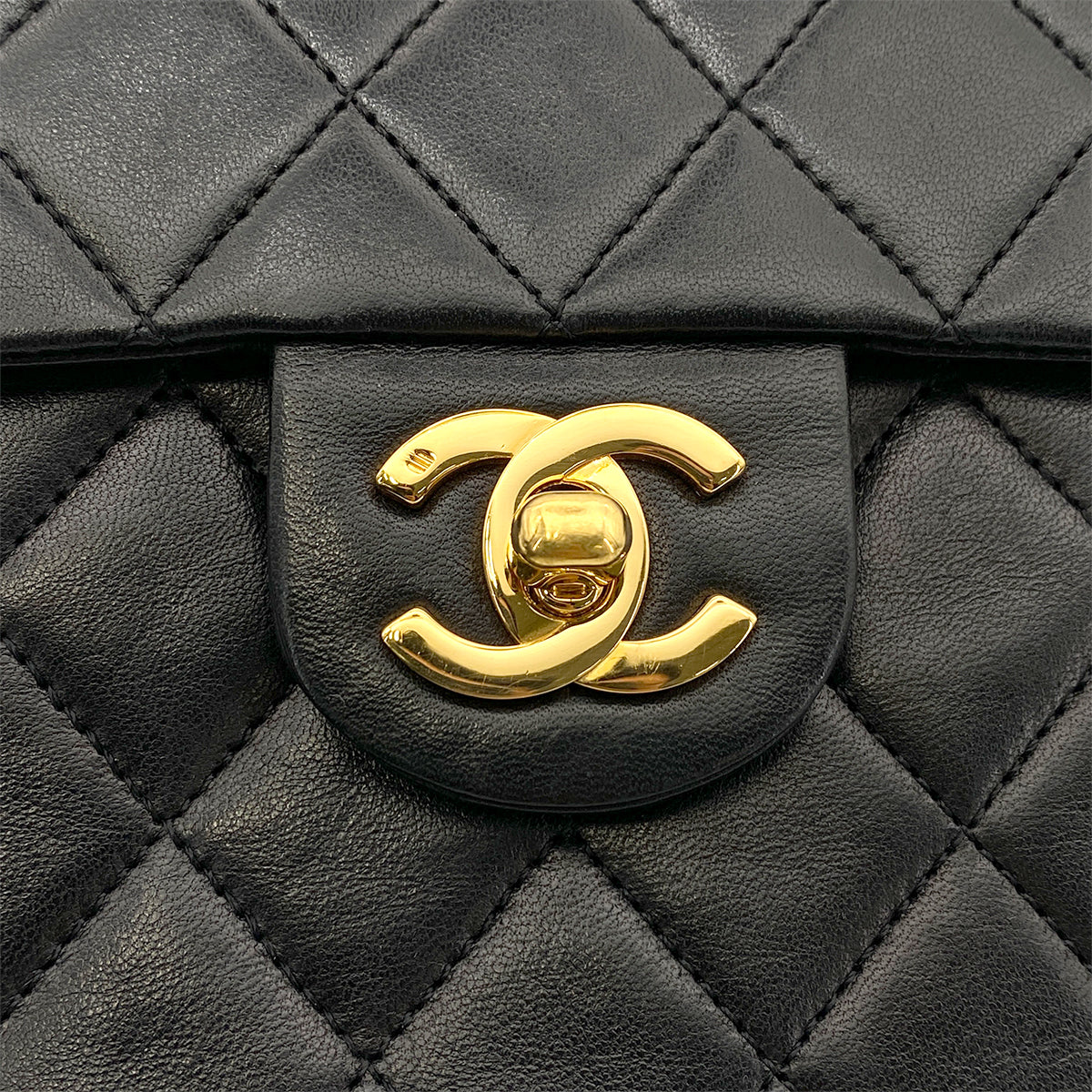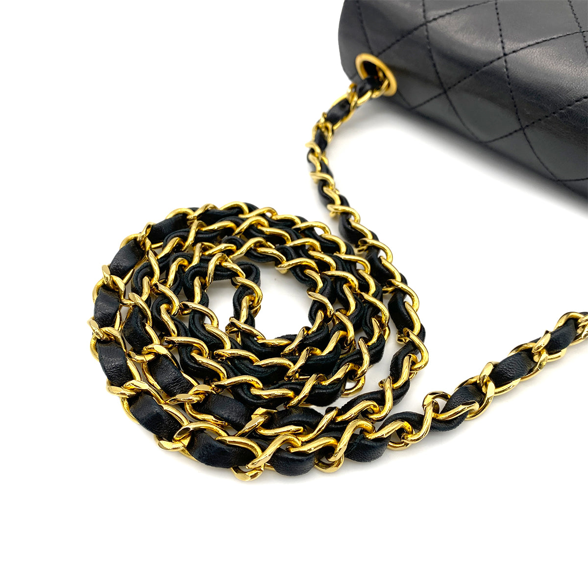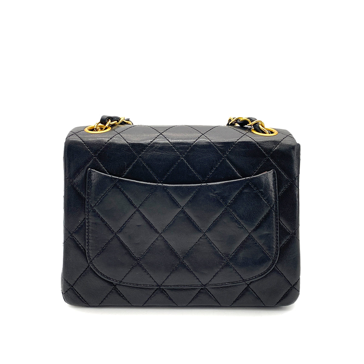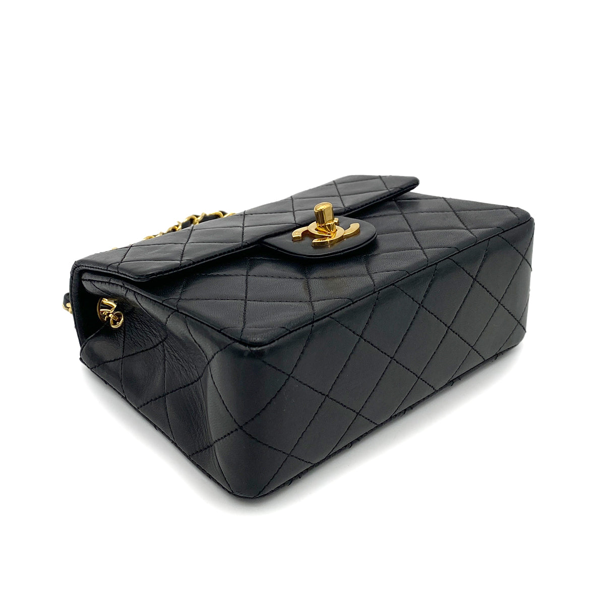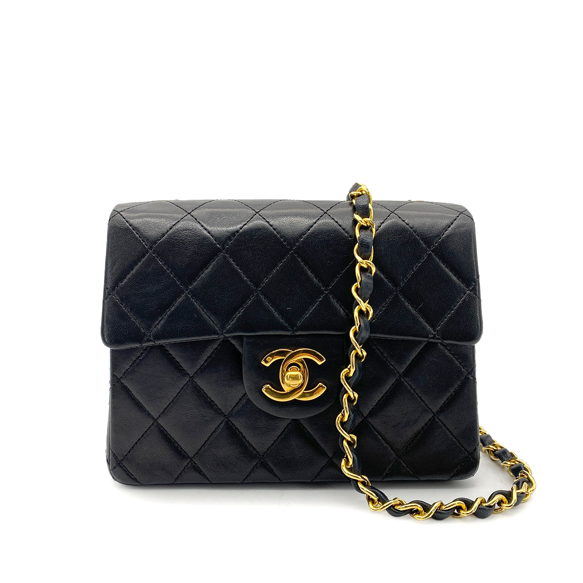 CHANEL VINTAGE MINI SQUARE 17 CHAIN SHOULDER BAG BLACK LAMB SKIN 90258903