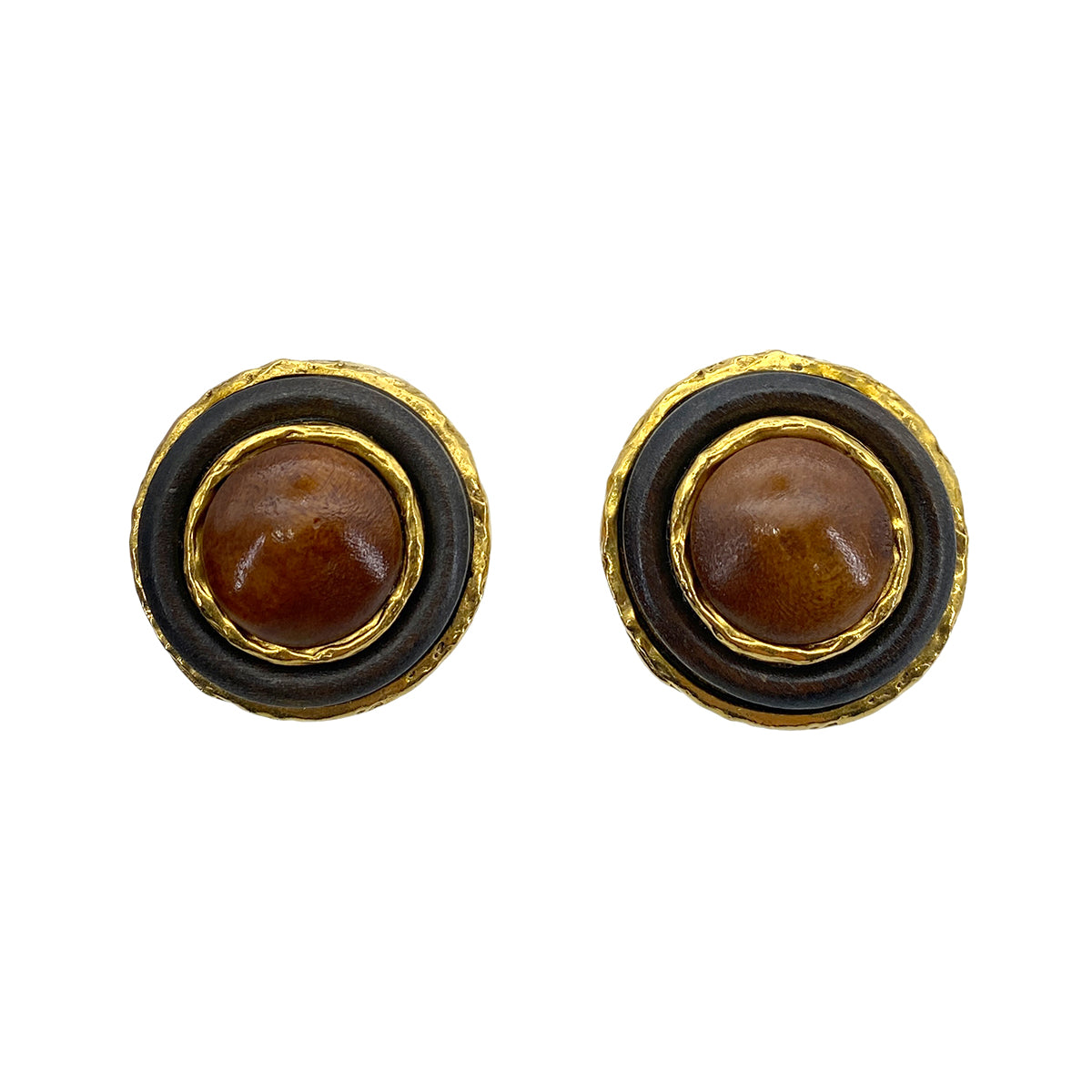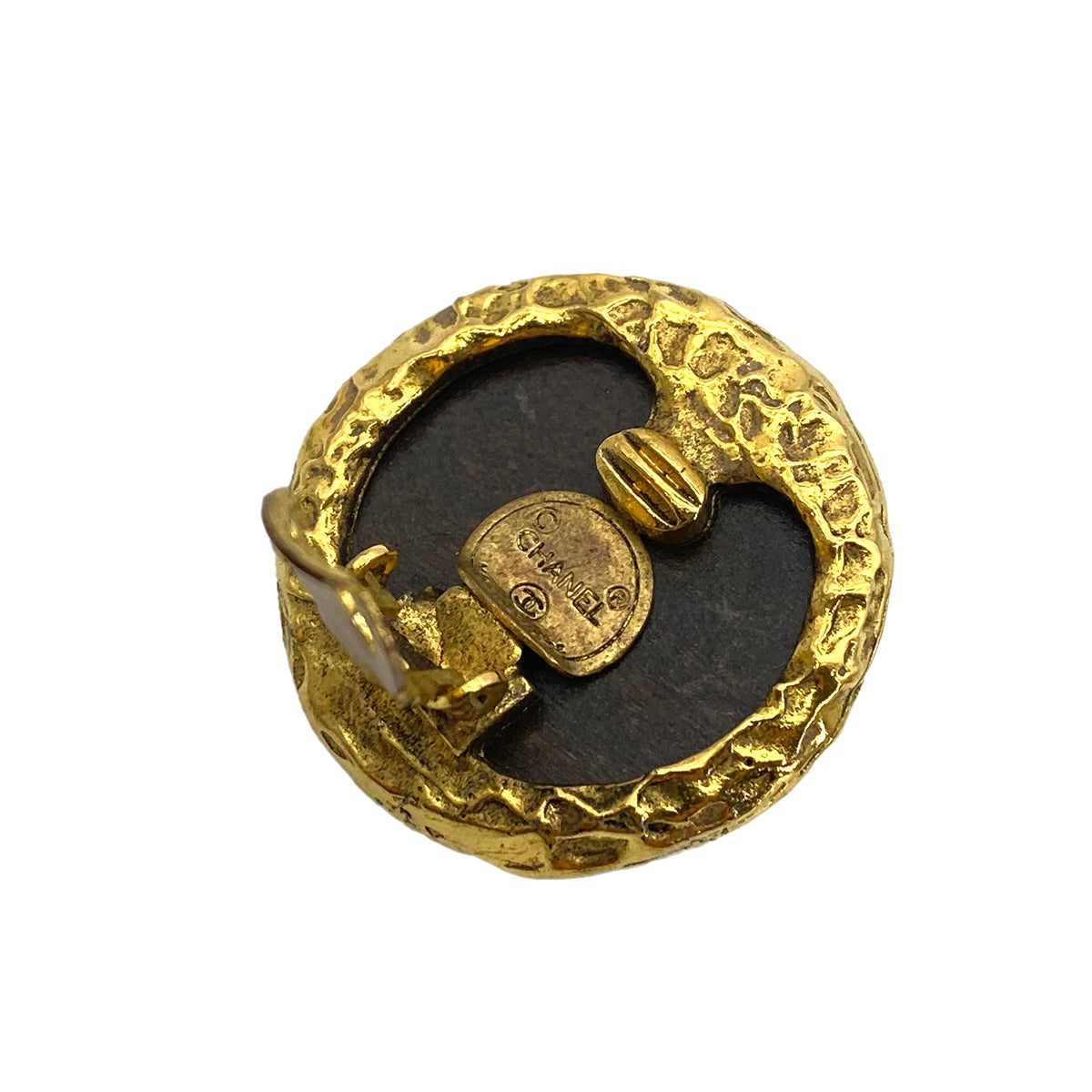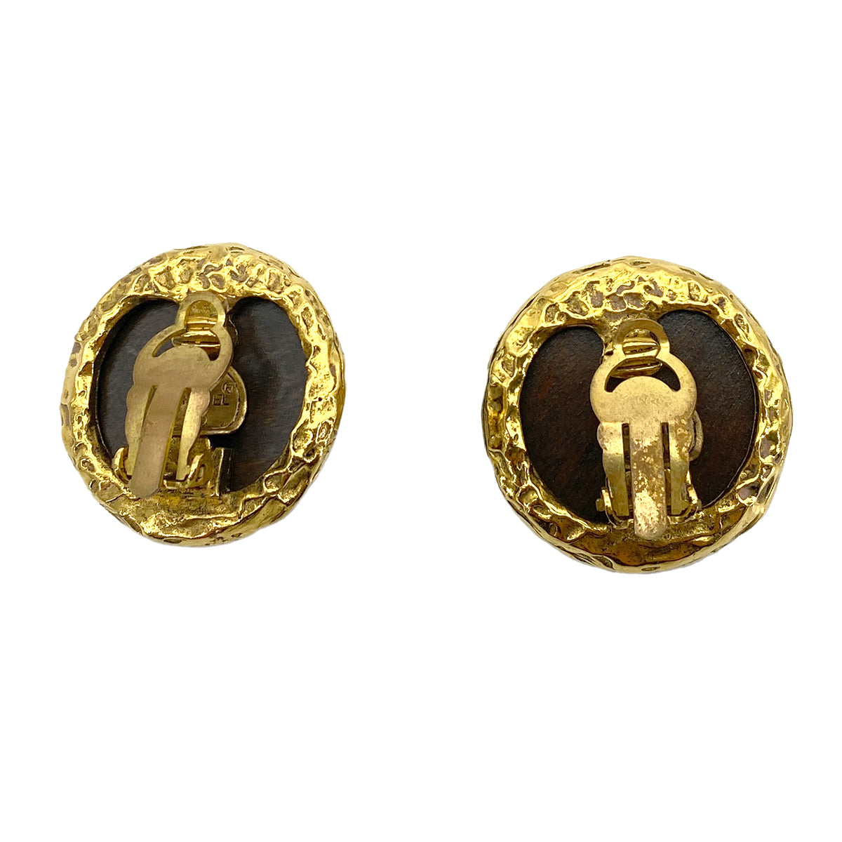 CHANEL VINTAGE EARRINGS WOOD ROUND ACCESSORY 90259593