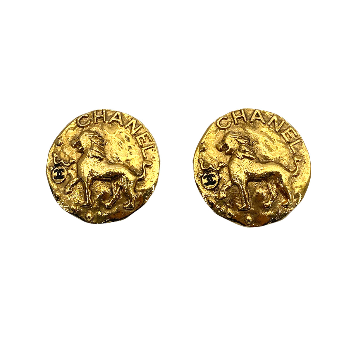 CHANEL VINTAGE EARRINGS LION COCOMARK ROUND ACCESSORY 23 90259727
