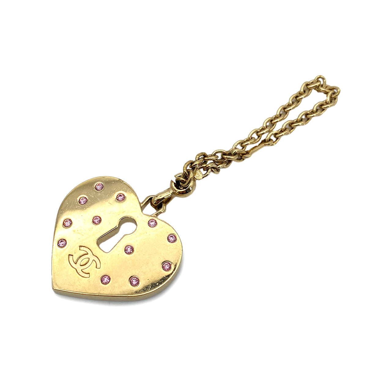 CHANEL VINTAGE HEART MOTIF BAG CHARM RHINESTONE ACCESSORY 02P 90259979