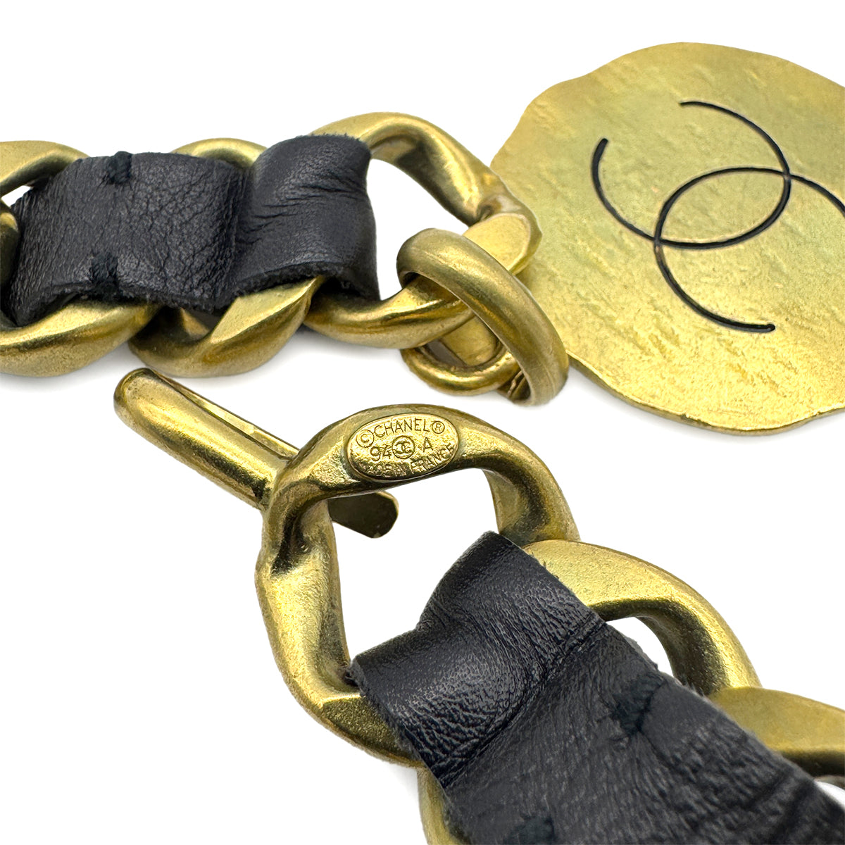 CHANEL VINTAGE CHAIN BELT LEATHER COCOMARK ACCESSORY 94A 90259986