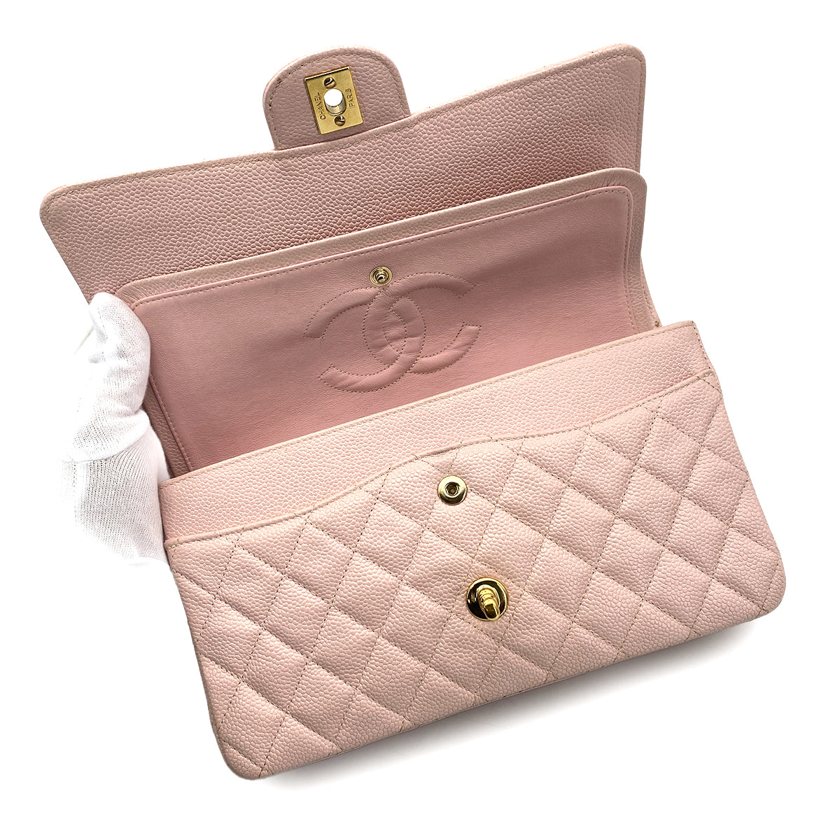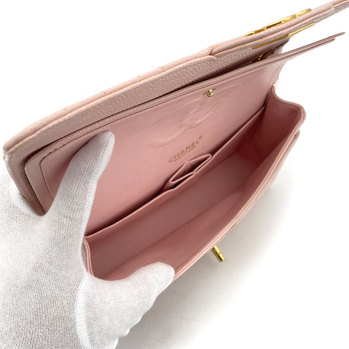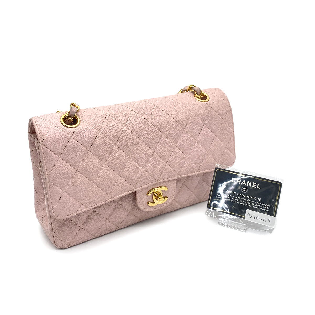 CHANEL VINTAGE CLASSIC FLAP MEDIUM CHAIN SHOULDER BAG PINK CAVIAR SKIN 90260119