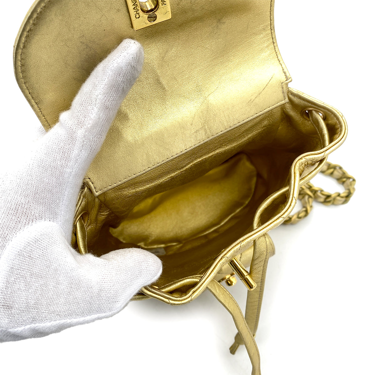 CHANEL VINTAGE DUMA CHAIN BACKPACK METALLIC GOLD LAMB SKIN 90260194