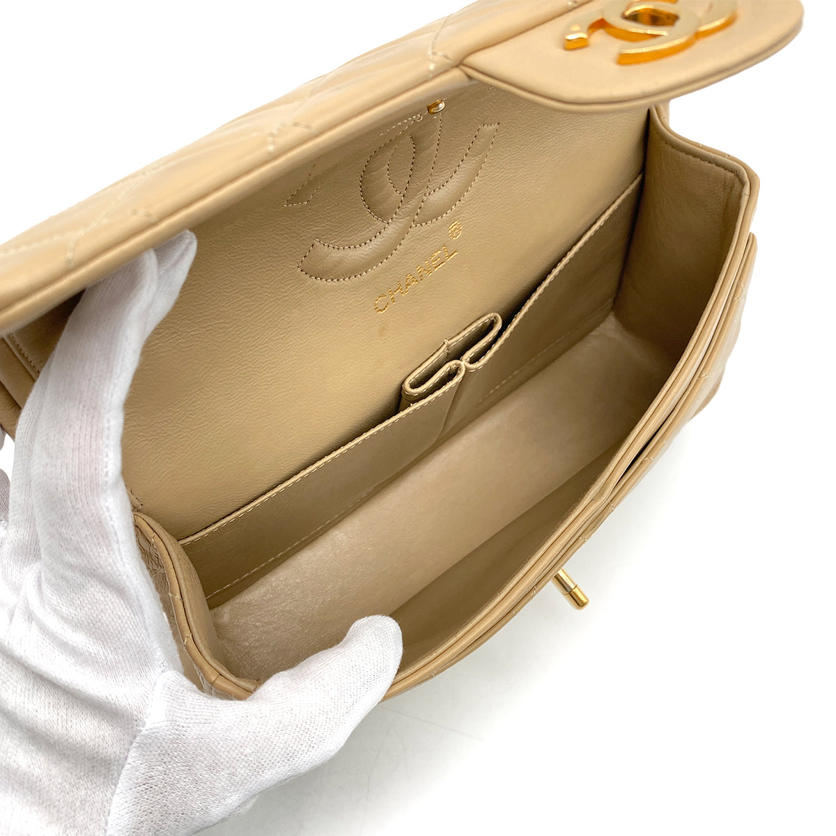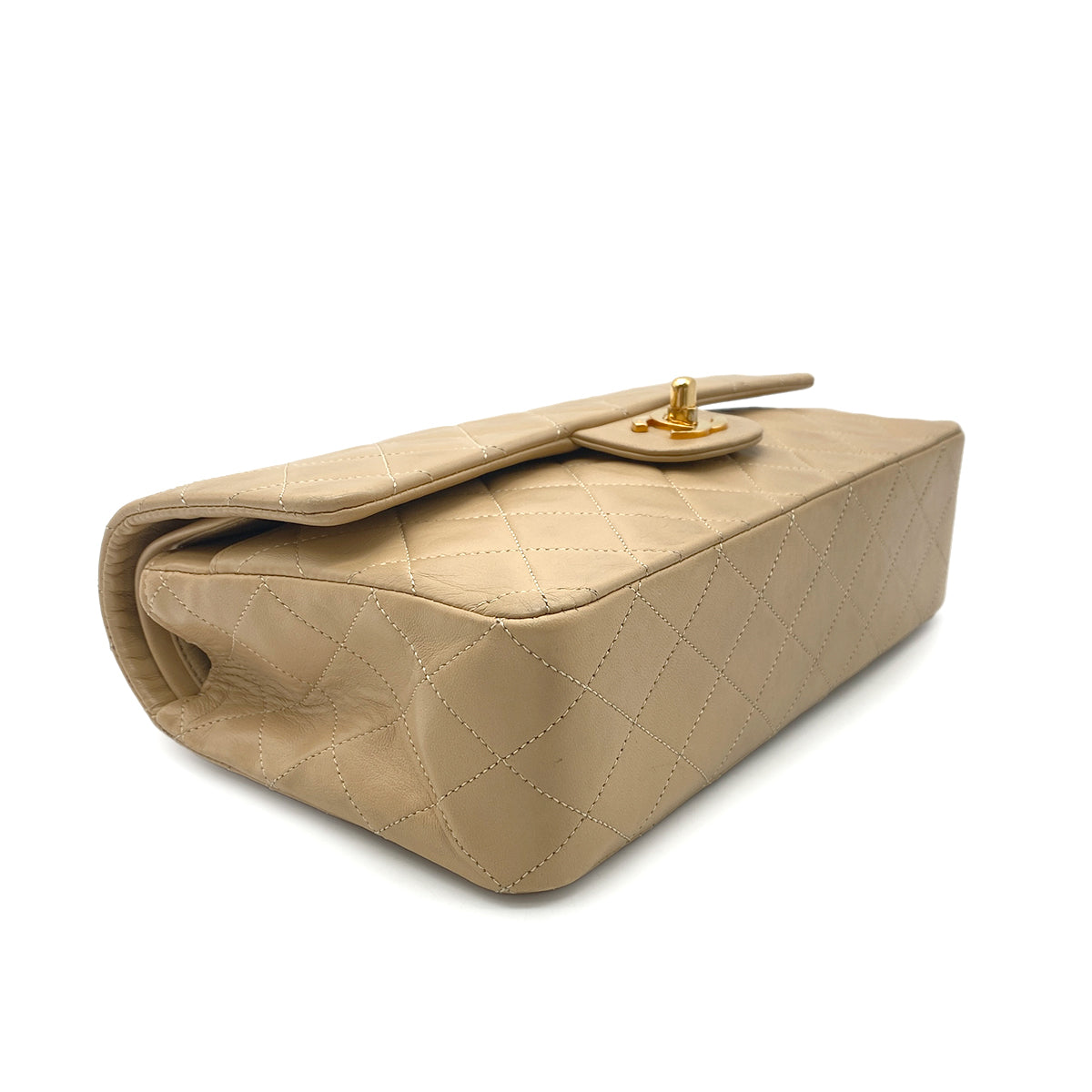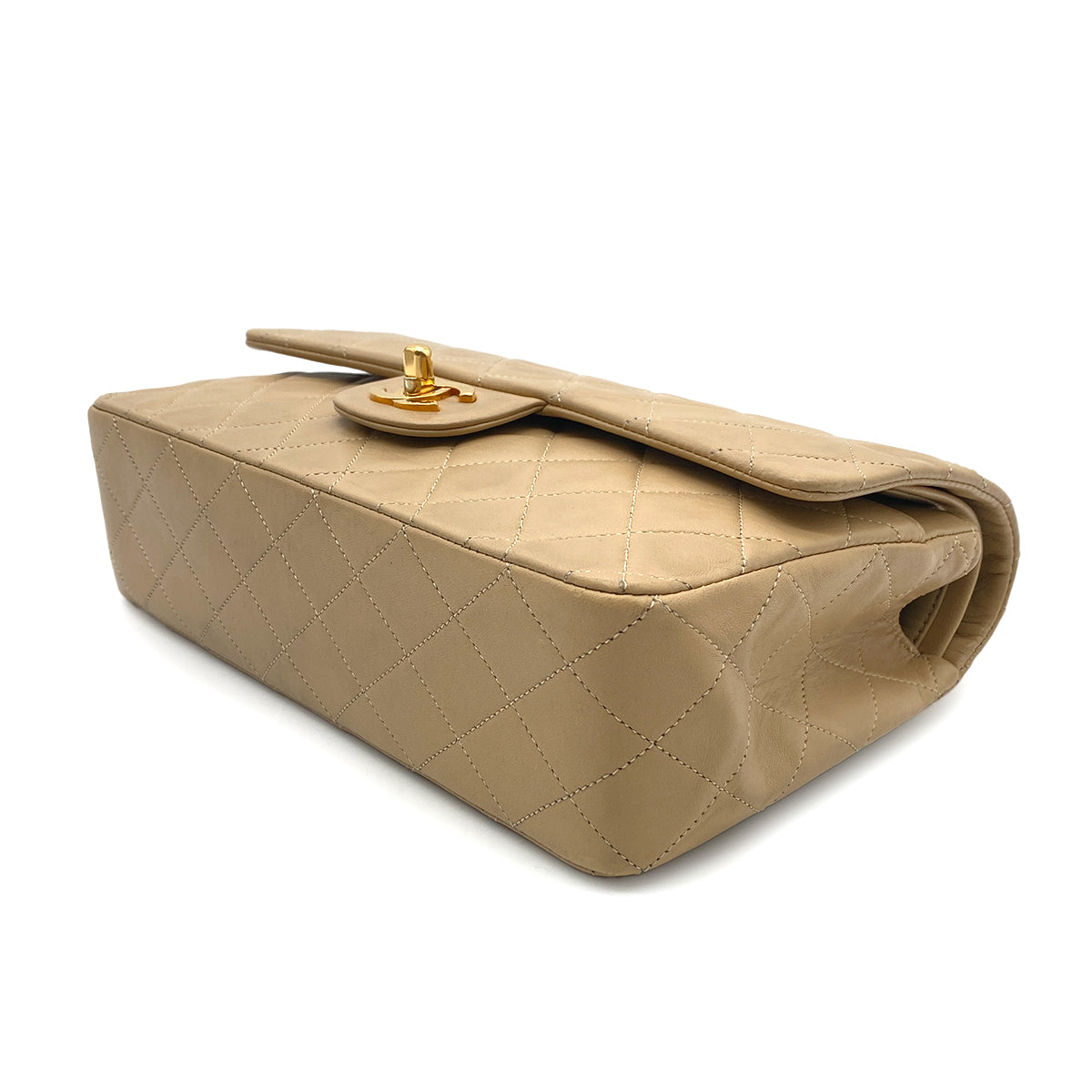 CHANEL VINTAGE CLASSIC FLAP MEDIUM CHAIN SHOULDER BAG BEIGE LAMB SKIN 90260990