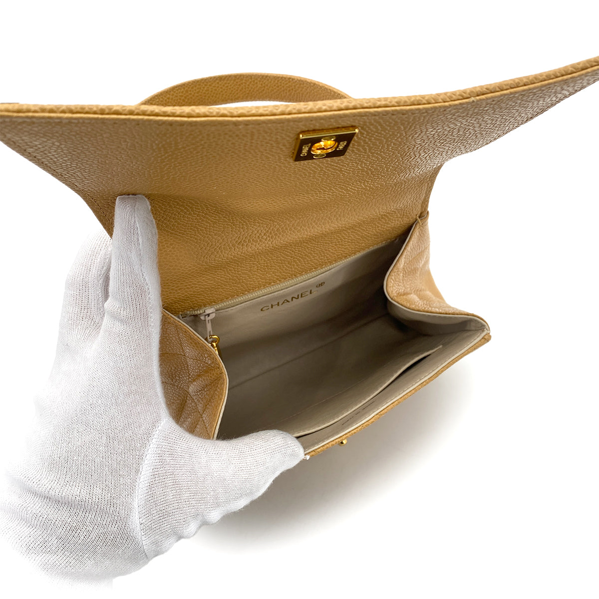 CHANEL VINTAGE MATELASSE HAND BAG BEIGE CAVIAR SKIN 90261206