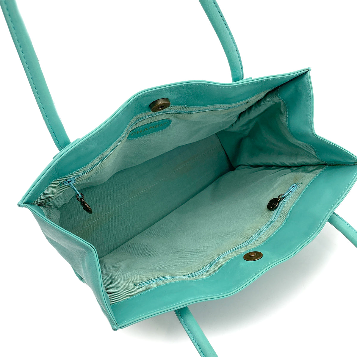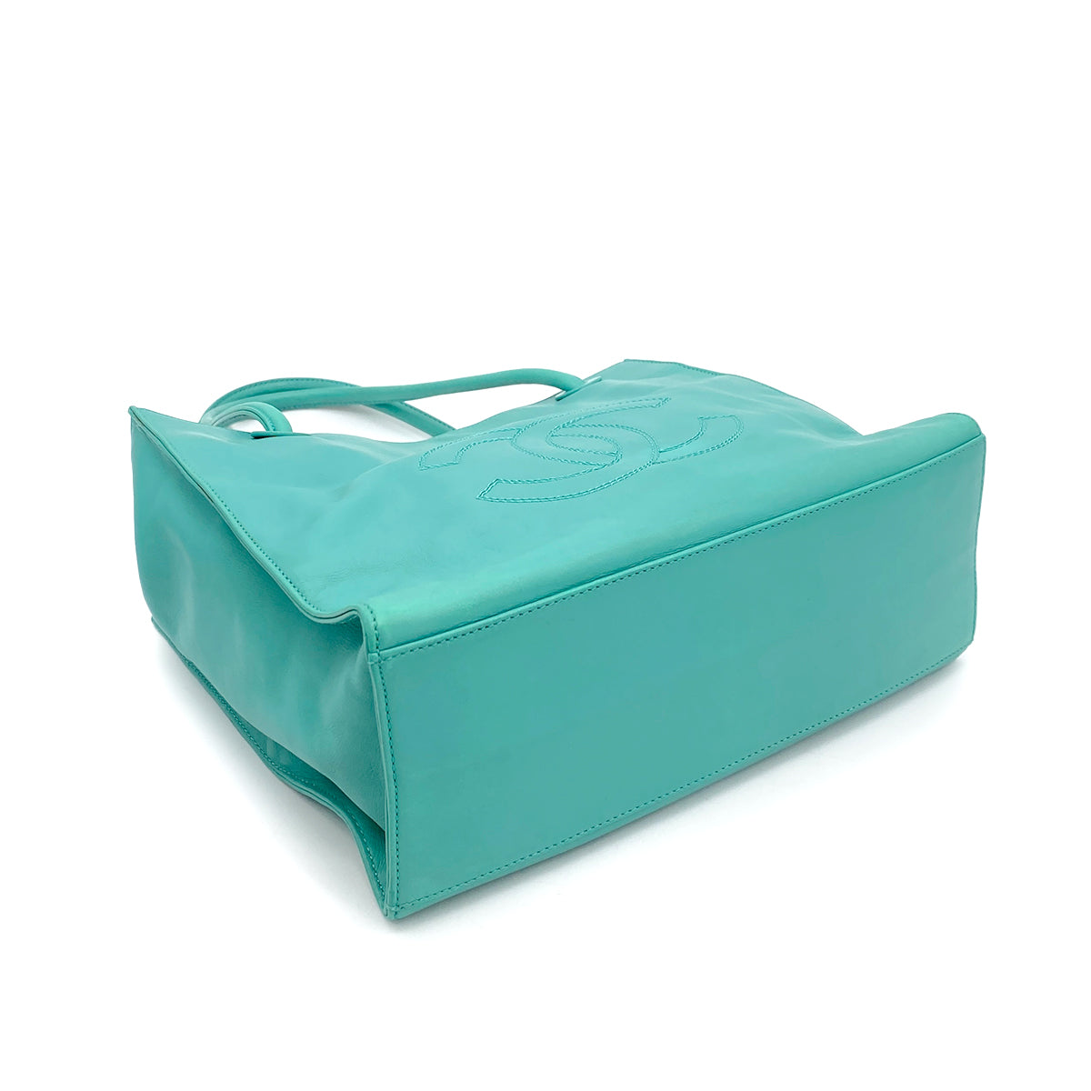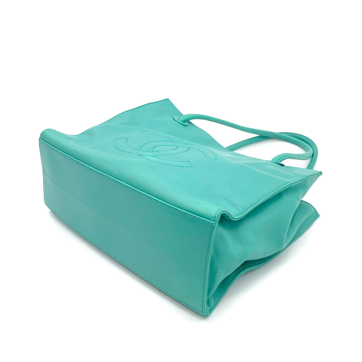 CHANEL VINTAGE BIG COCO TOTE BAG LIGHT GREEN LEATHER 90261236