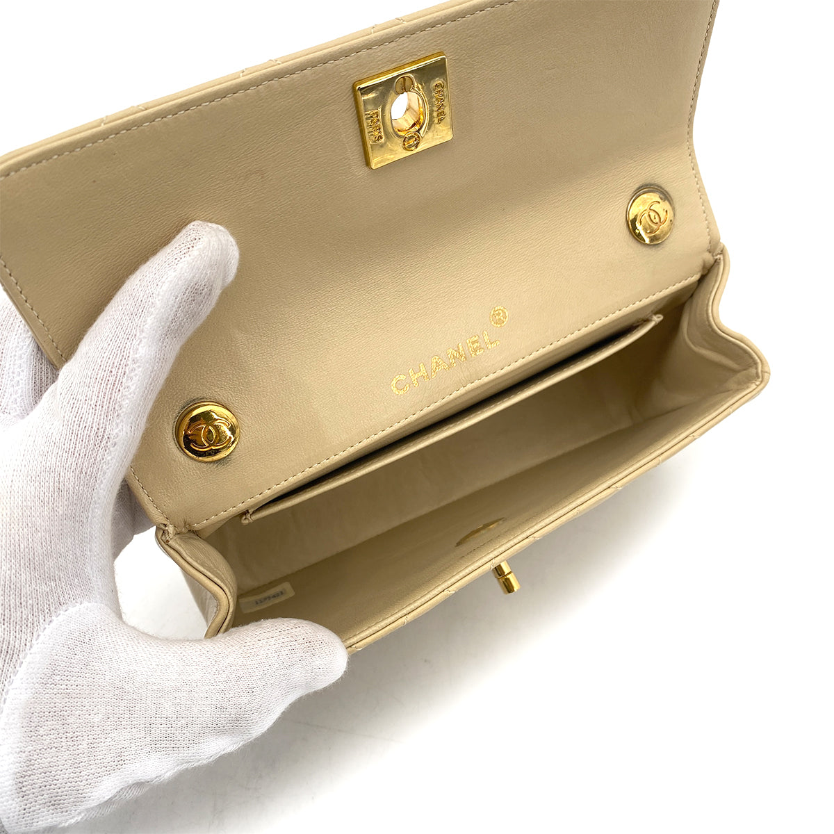 CHANEL VINTAGE MINI MATELASSE CHAIN SHOULDER BAG BEIGE LAMB SKIN 90261298