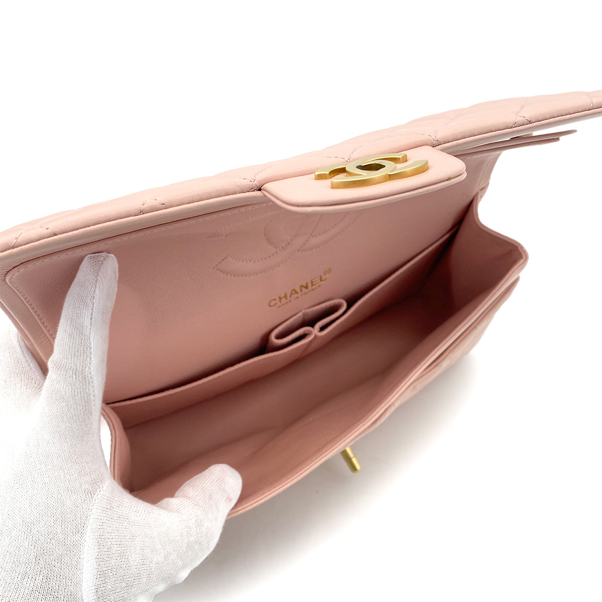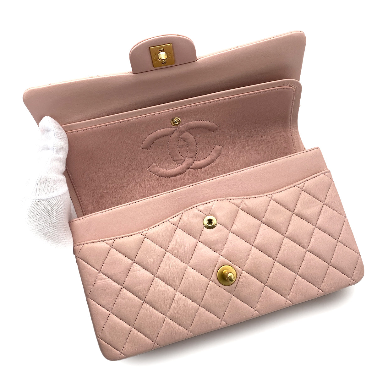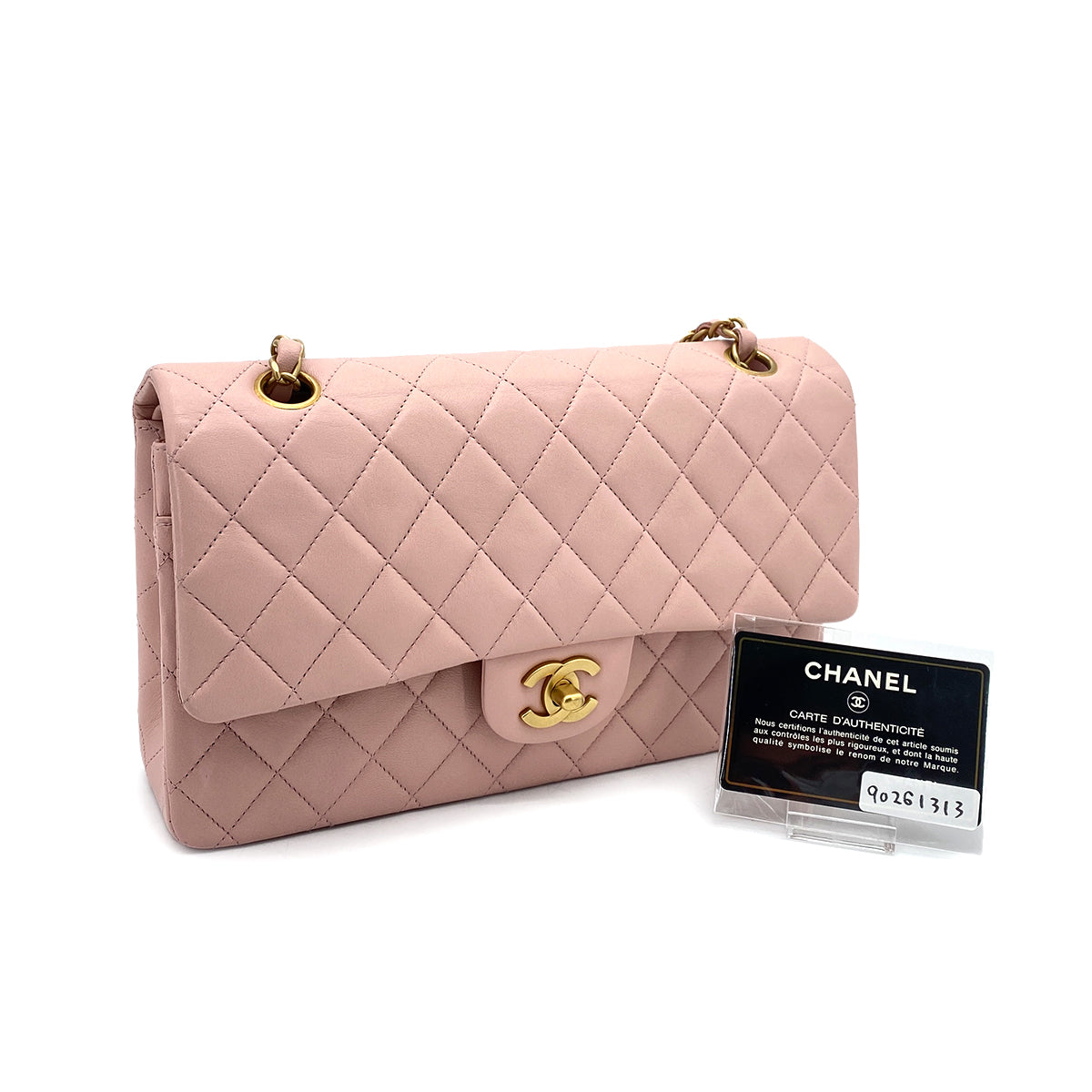 CHANEL VINTAGE CLASSIC FLAP MEDIUM CHAIN SHOULDER BAG PINK LAMB SKIN 90261313
