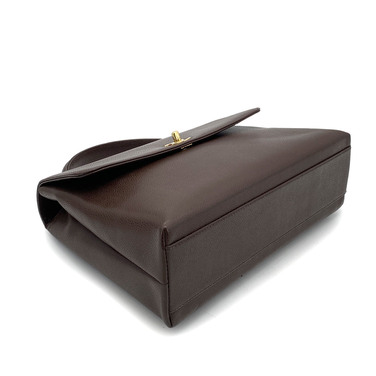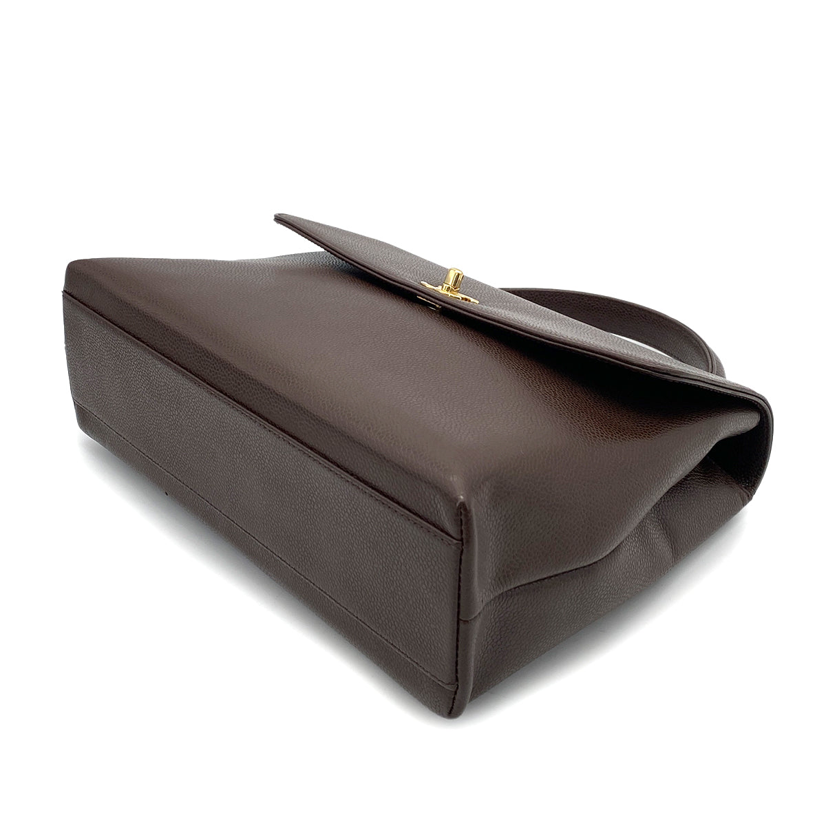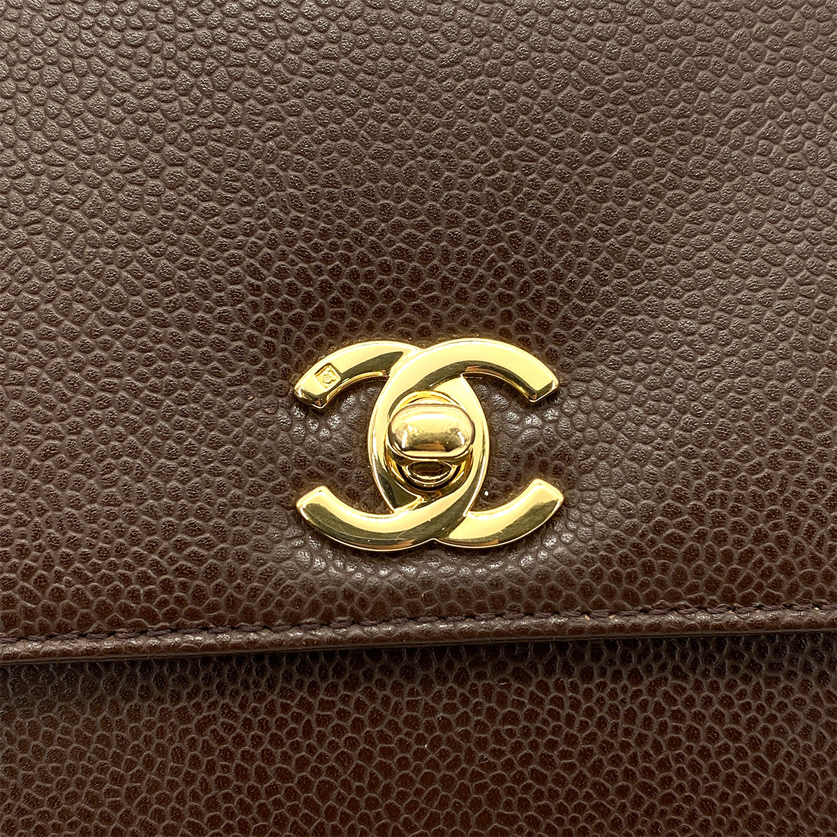 CHANEL VINTAGE KELLY TURN LOCK HAND BAG BROWN CAVIAR SKIN 90261315