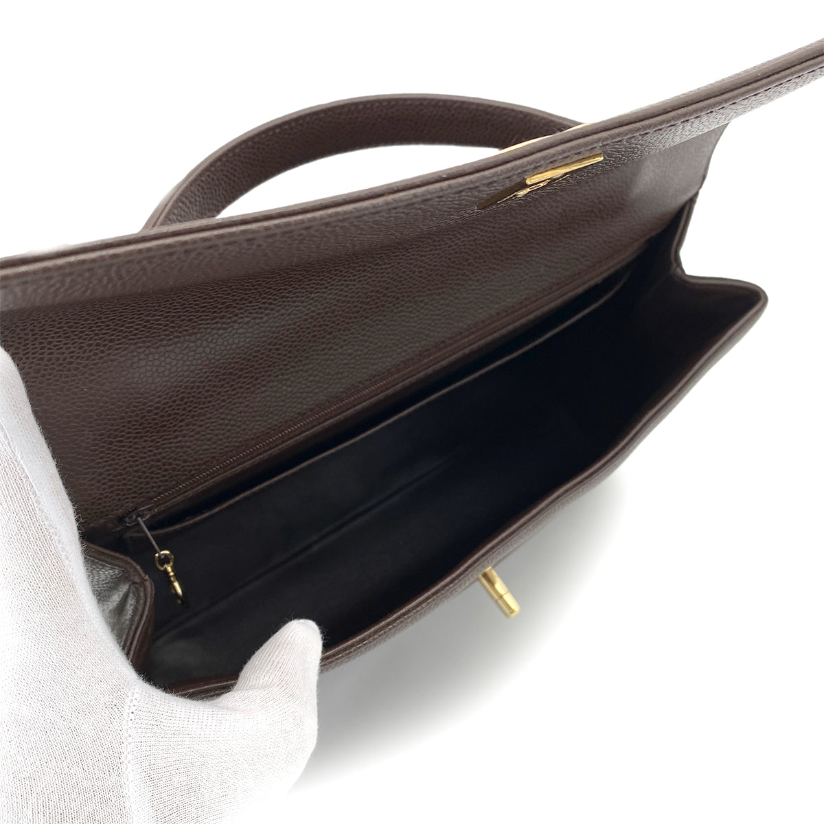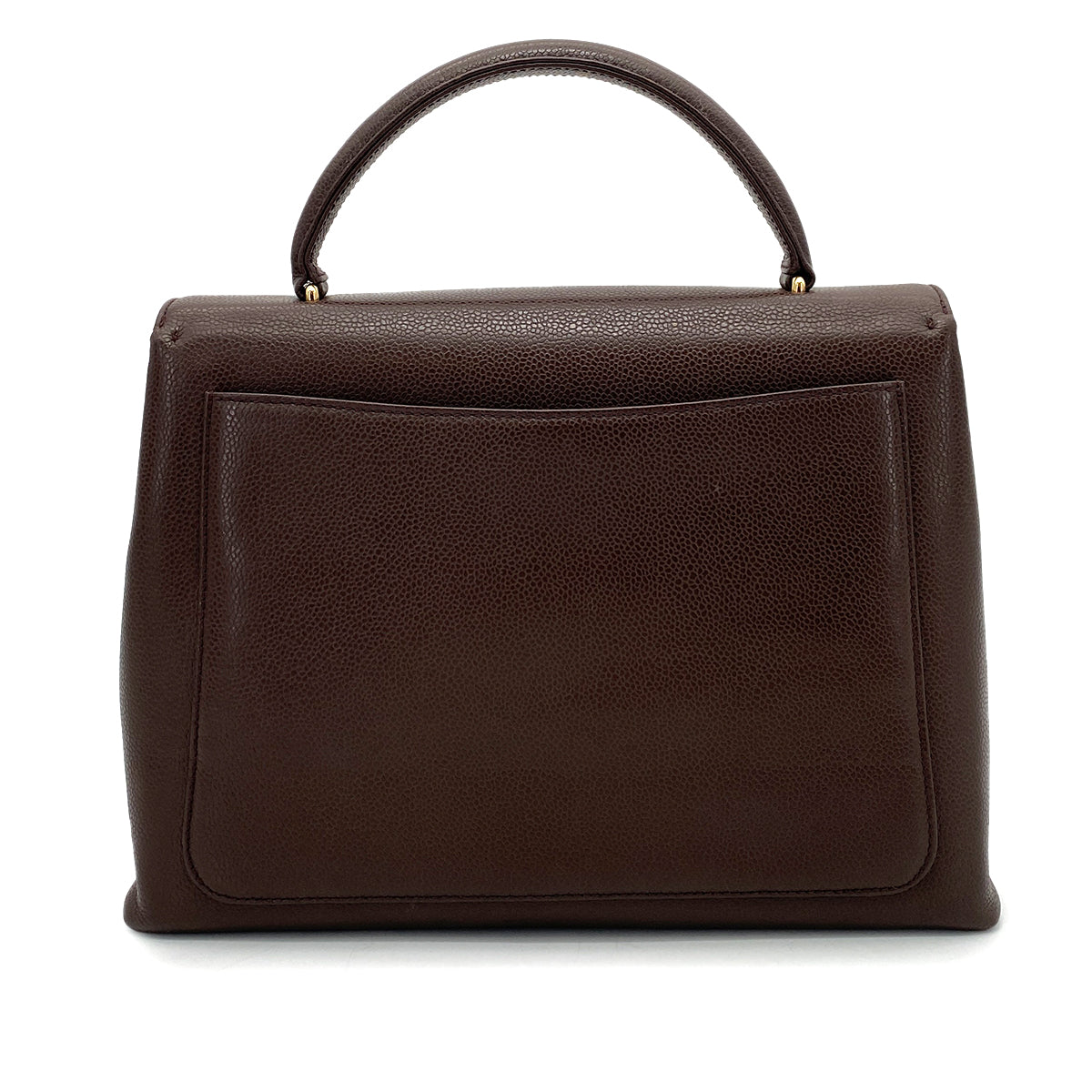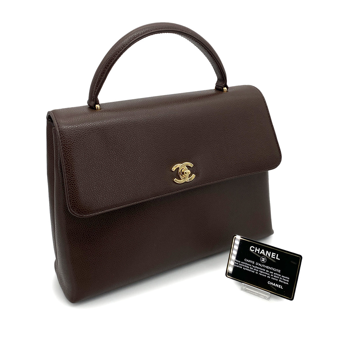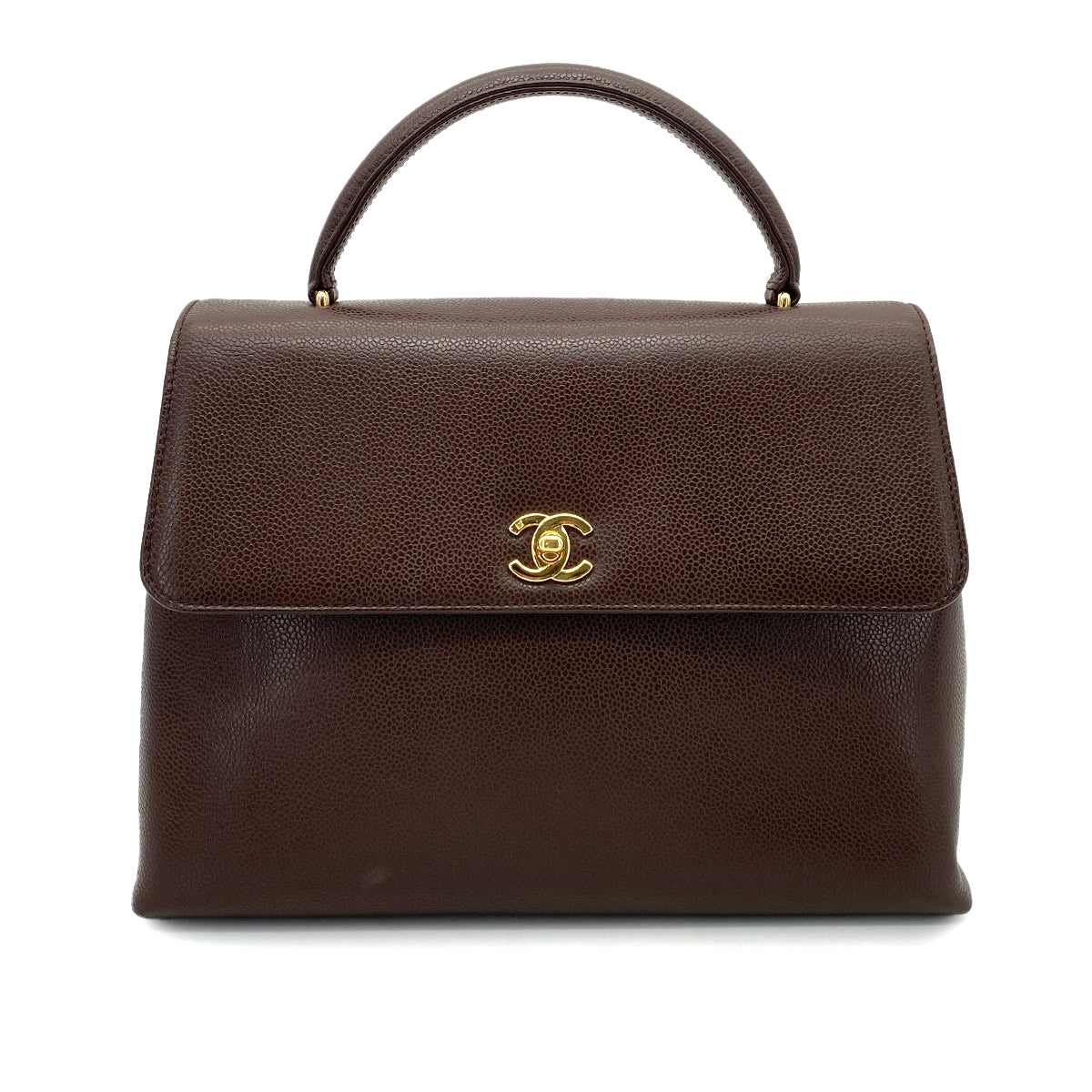 CHANEL VINTAGE KELLY TURN LOCK HAND BAG BROWN CAVIAR SKIN 90261315