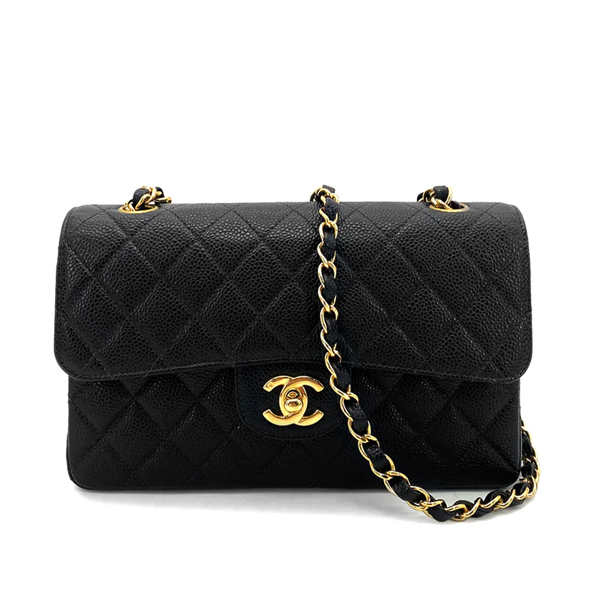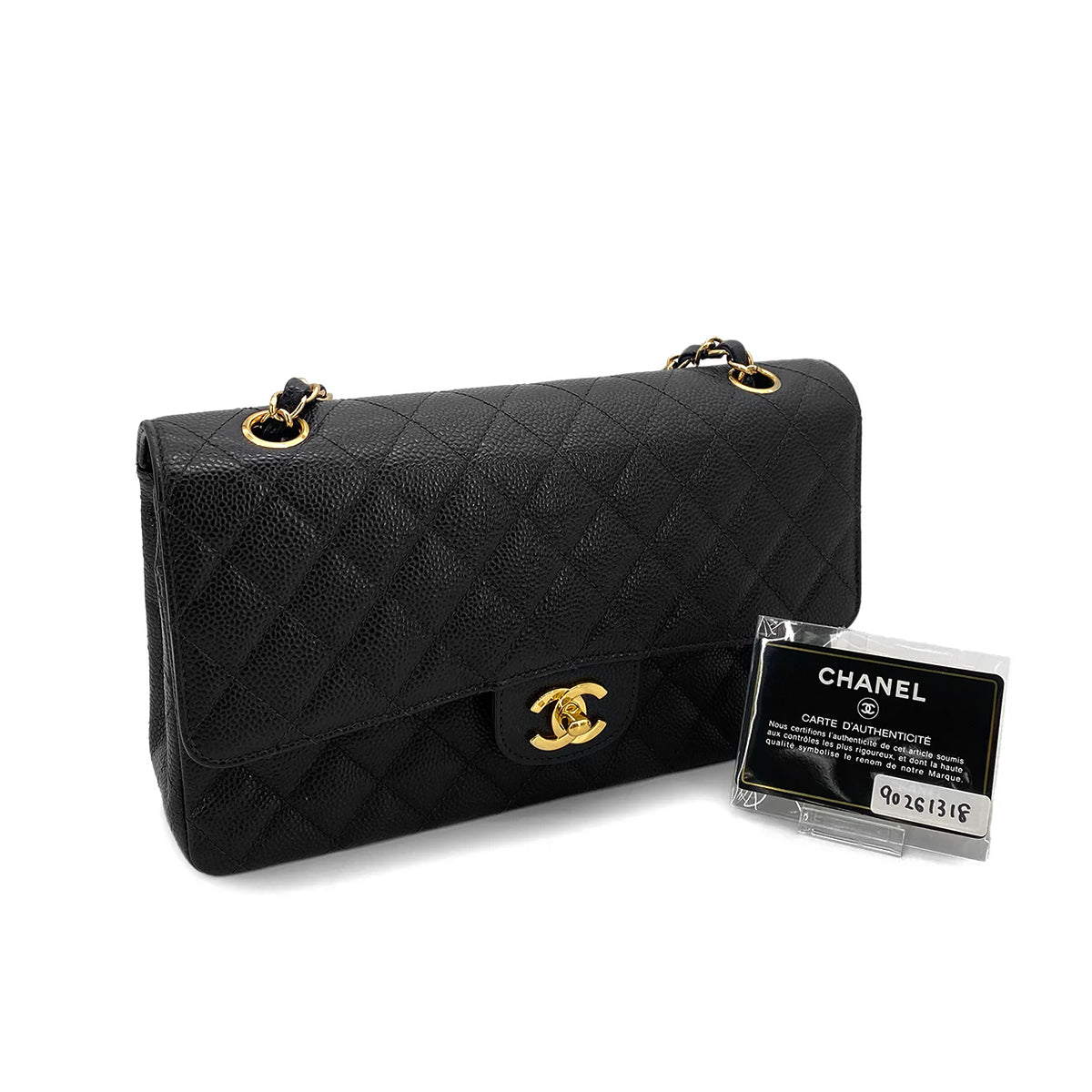CHANEL VINTAGE CLASSIC FLAP MEDIUM CHAIN SHOULDER BAG BLACK CAVIAR SKIN 90261318