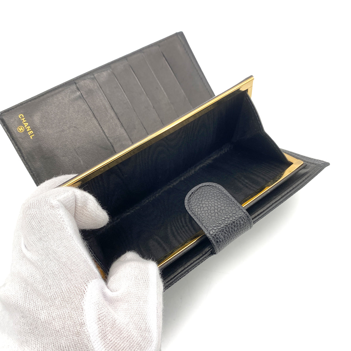 CHANEL VINTAGE BIFOLD LONG WALLET BLACK CAVIAR SKIN 90261326