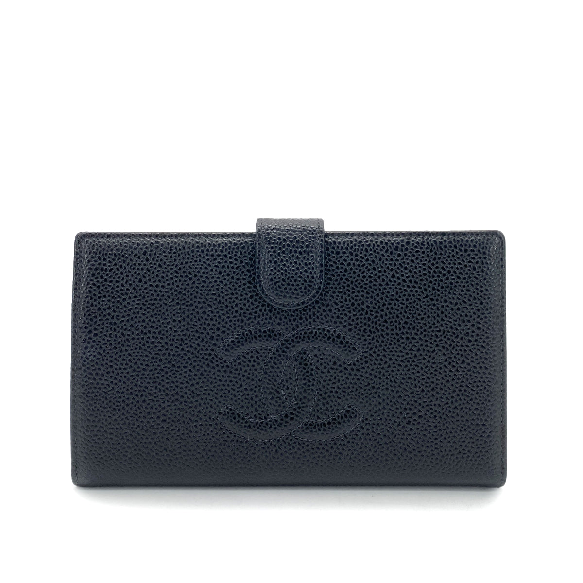 CHANEL VINTAGE BIFOLD LONG WALLET BLACK CAVIAR SKIN 90261327