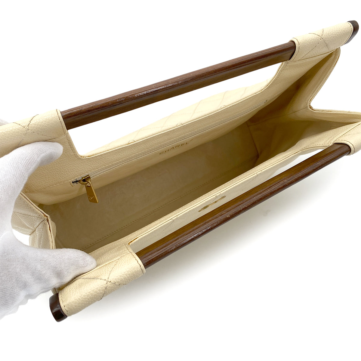 CHANEL VINTAGE MATELASSE WOOD HANDLE BAG BEIGE CAVIAR SKIN 90261564