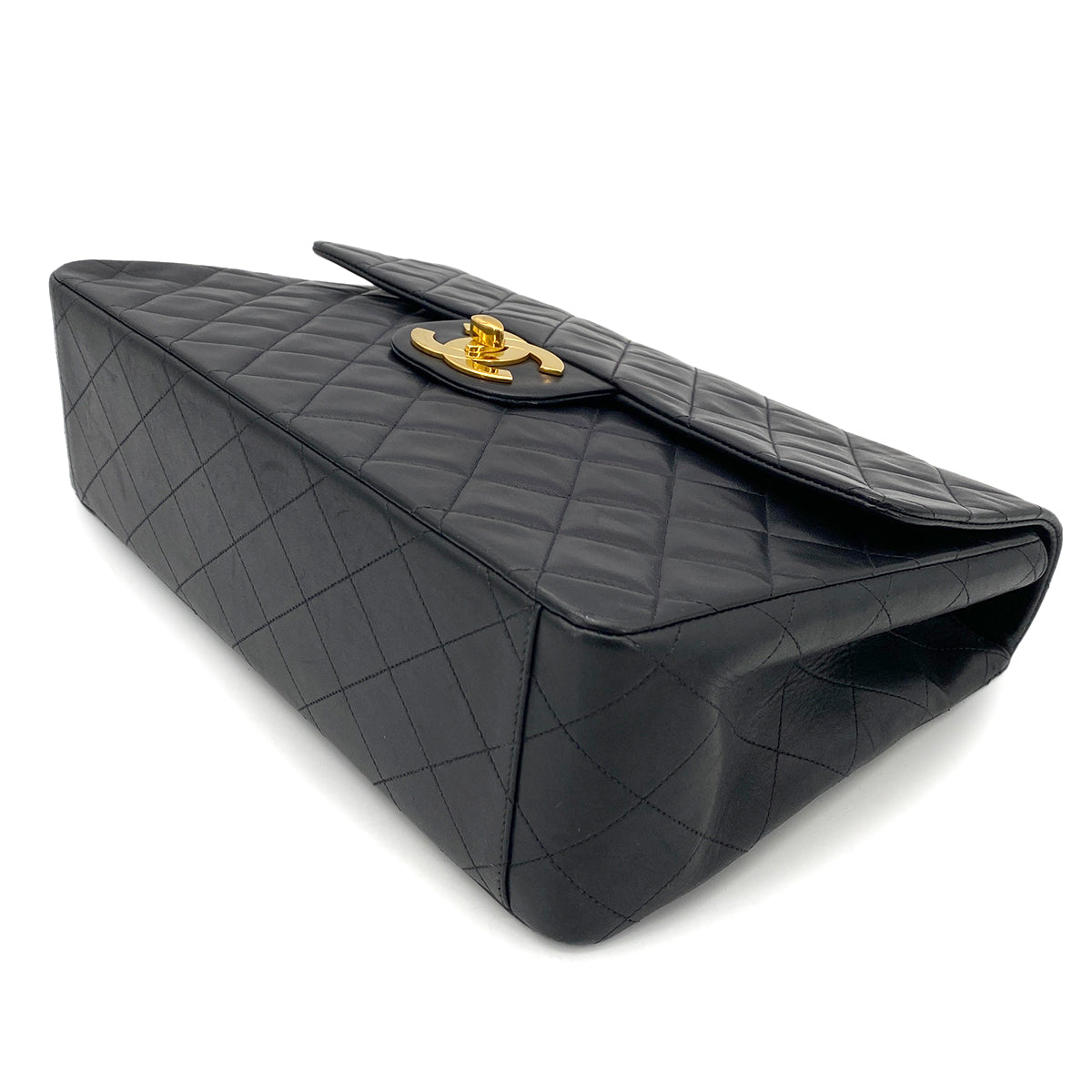 CHANEL VINTAGE MAXI MATELASSE 34 CHAIN SHOULDER BAG BLACK LAMB SKIN 90261589