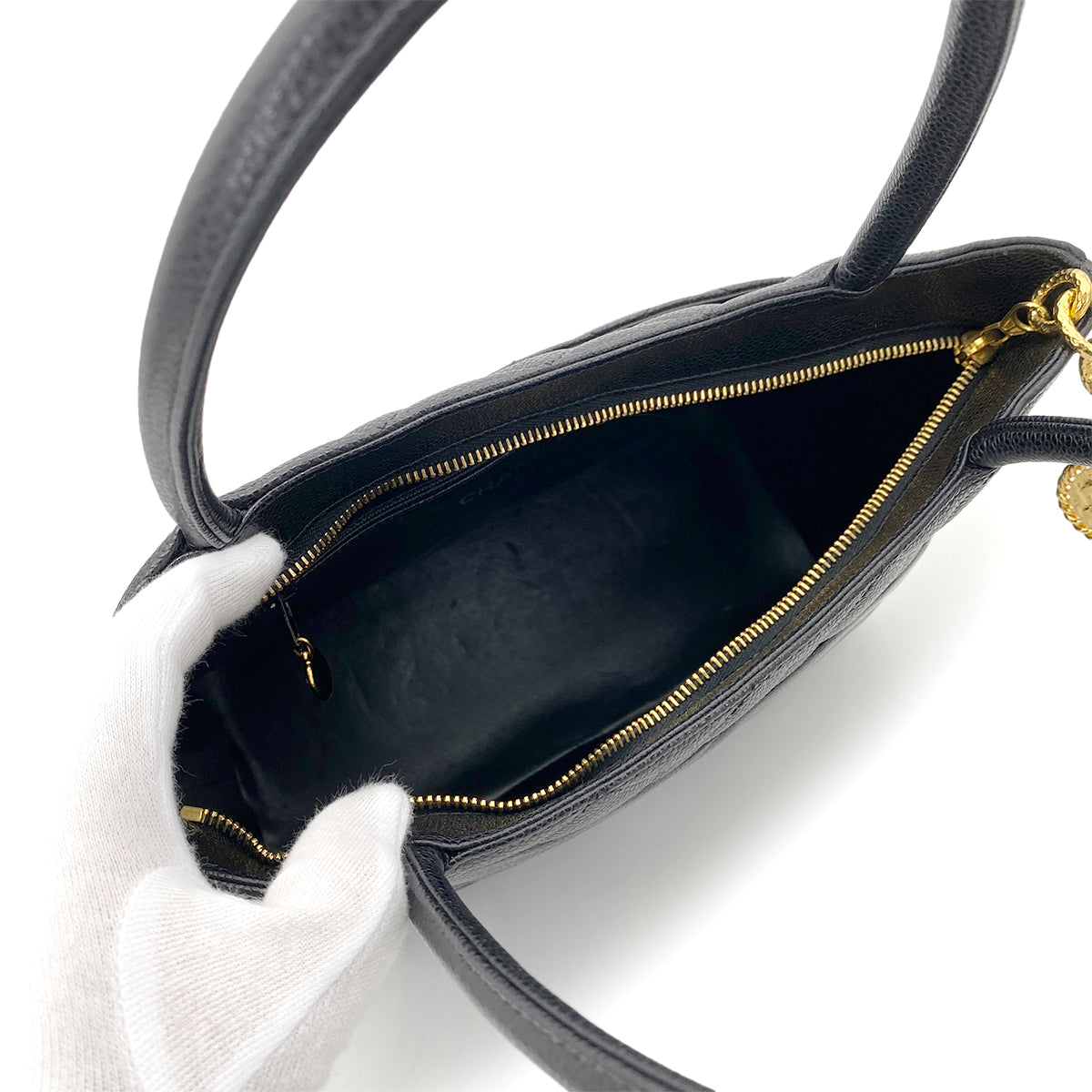 CHANEL VINTAGE MEDALLION TOTE BAG BLACK CAVIAR SKIN 90262374