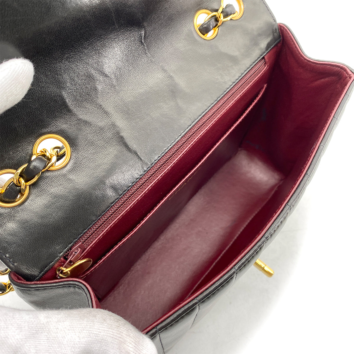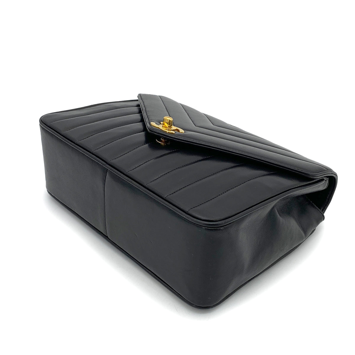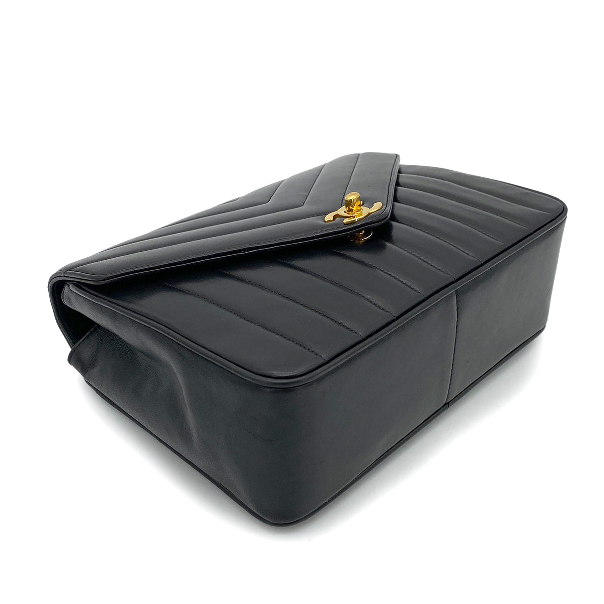 CHANEL VINTAGE CHEVRON CHAIN SHOULDER BAG BLACK LAMB SKIN 90262844