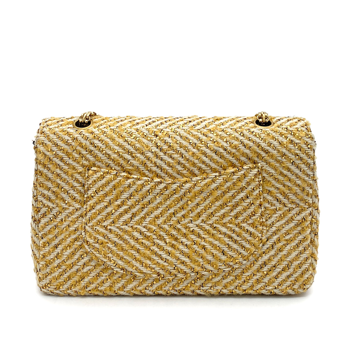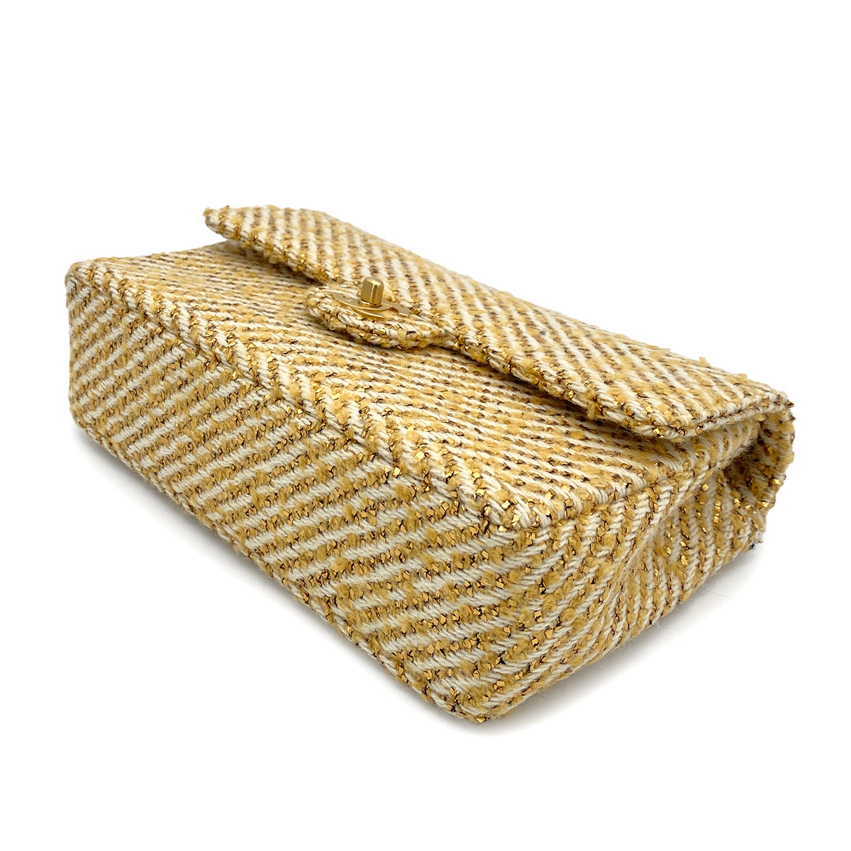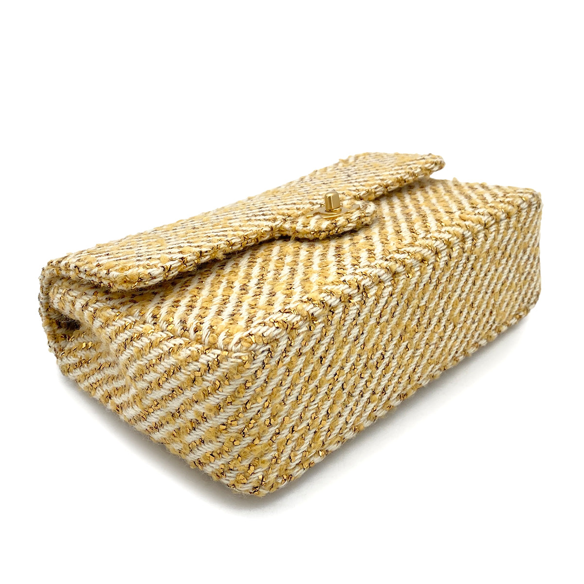 CHANEL VINTAGE CLASSIC FLAP MEDIUM CHAIN SHOULDER BAG BEIGE WHITE TWEED 90263081