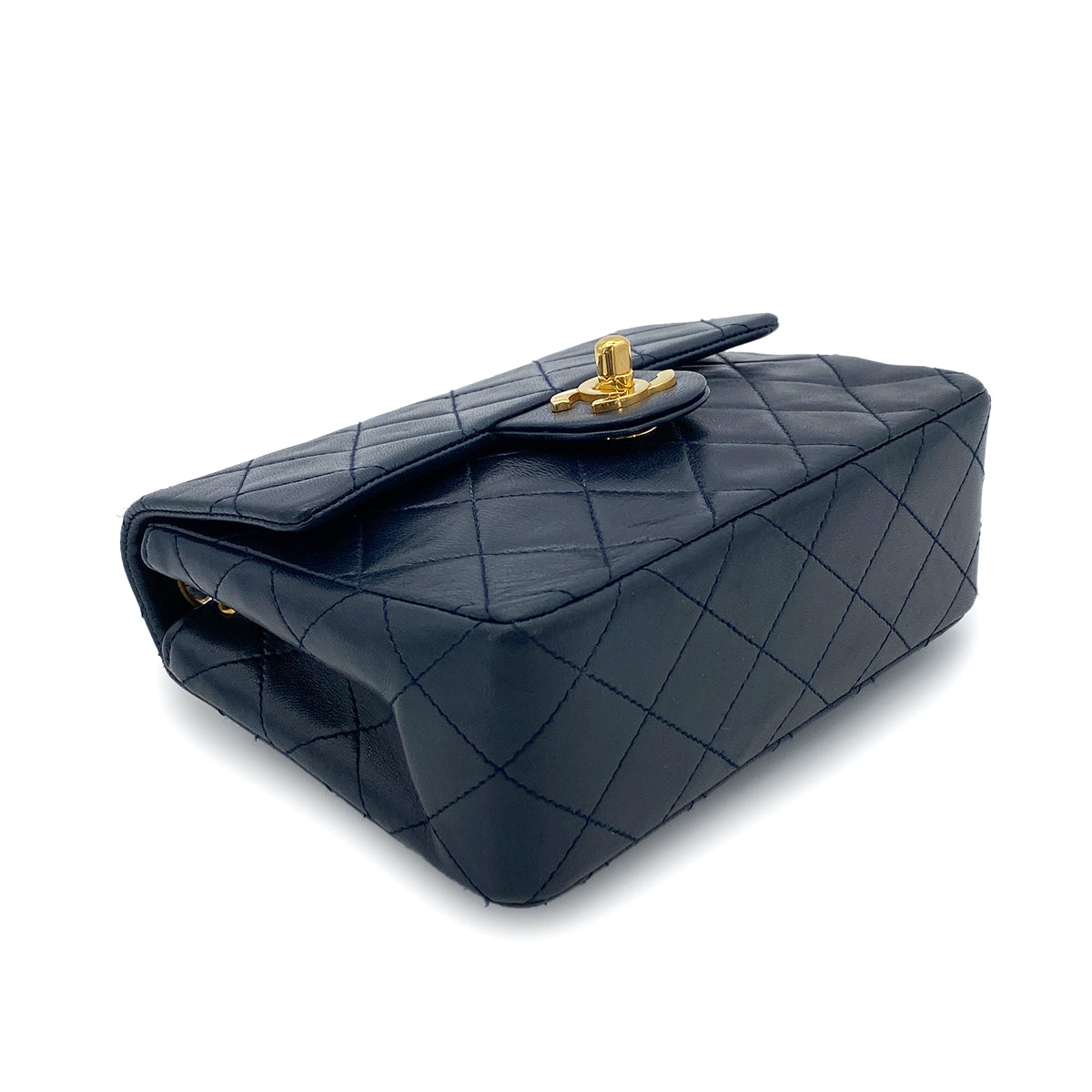 CHANEL VINTAGE MINI SQUARE 17 CHAIN SHOULDER BAG NAVY LAMB SKIN 90263101