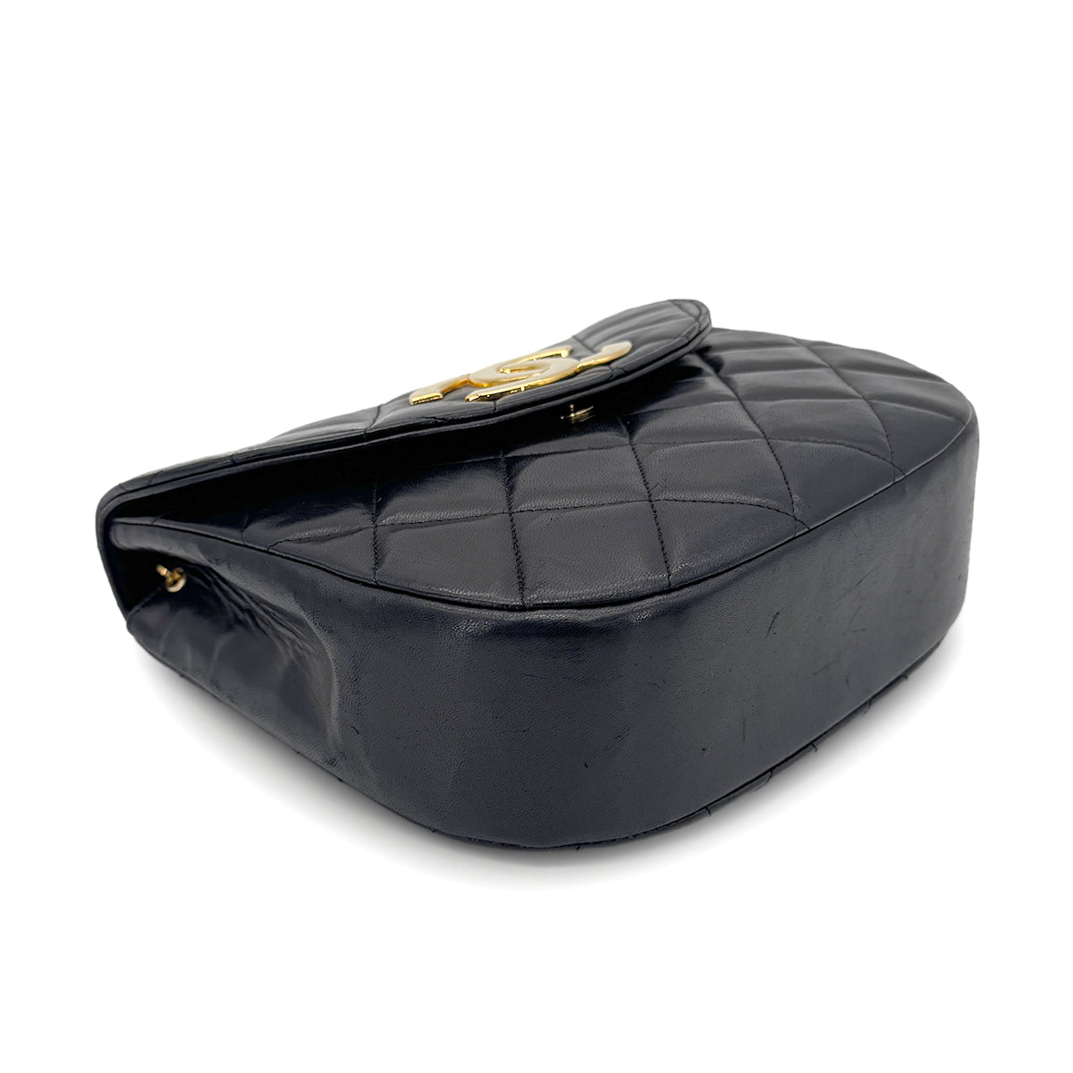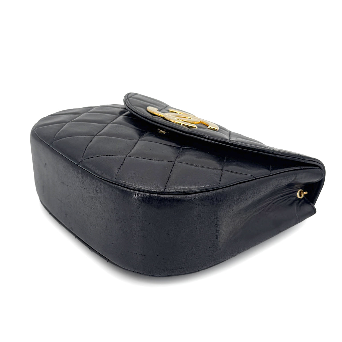 CHANEL VINTAGE MATELASSE BIG COCO CHAIN SHOULDER BAG BLACK LAMB SKIN 90263103