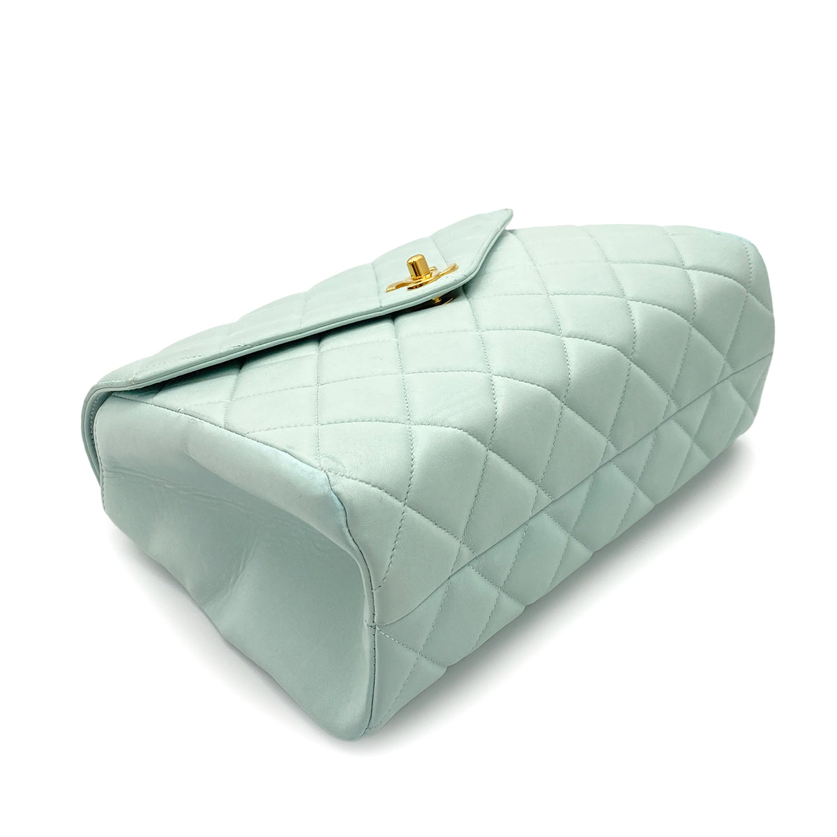 CHANEL VINTAGE MATELASSE CHAIN SHOULDER BAG LIGHT BLUE LAMB SKIN 90263219