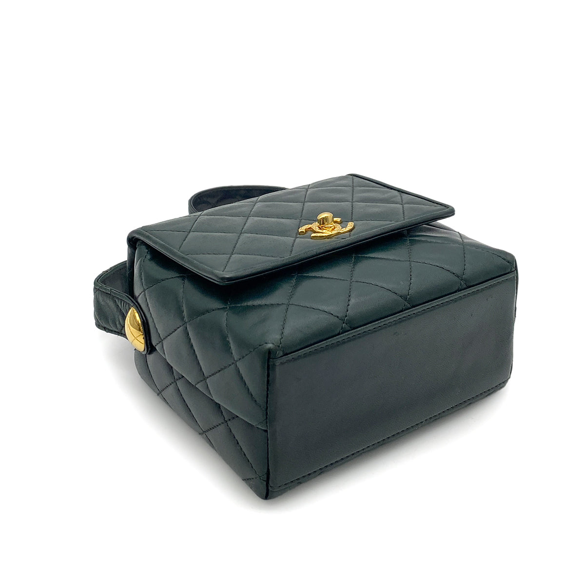 CHANEL VINTAGE MATELASSE HAND BAG DARK GREEN LAMB SKIN 90264371
