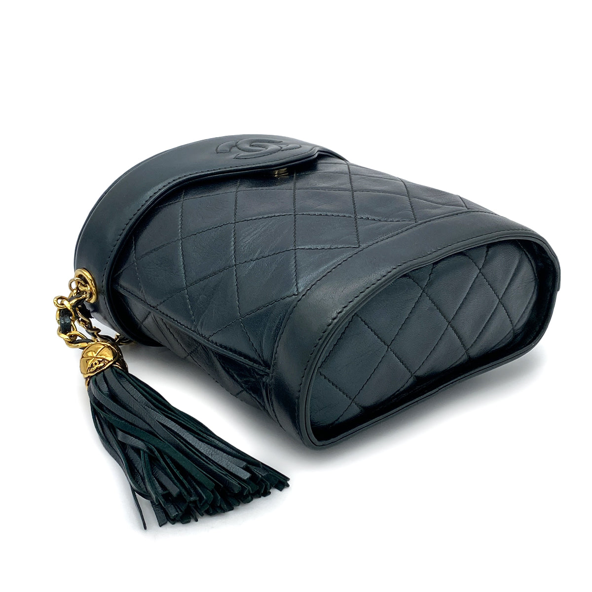 CHANEL VINTAGE MATELASSE FRINGE CHAIN SHOULDER BAG GREEN LAMB SKIN 90264528