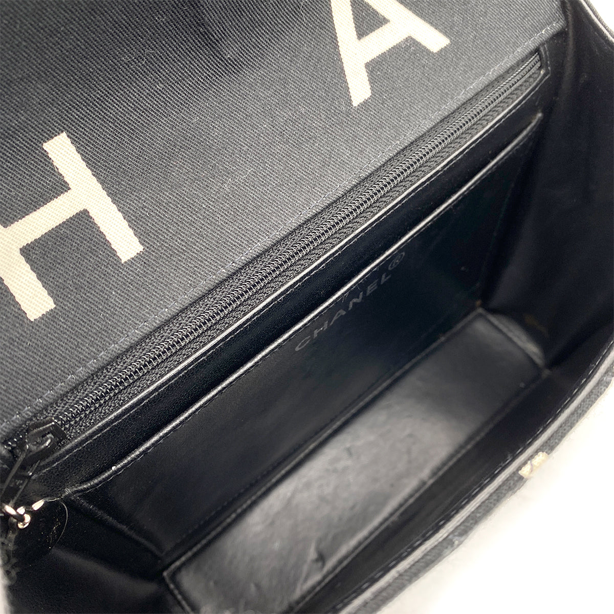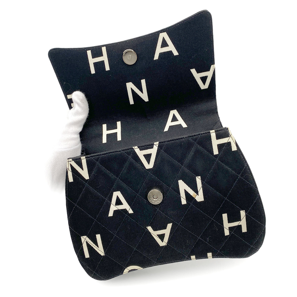 CHANEL VINTAGE LOGO PRINT CHAIN HAND BAG BLACK CANVAS 90264785