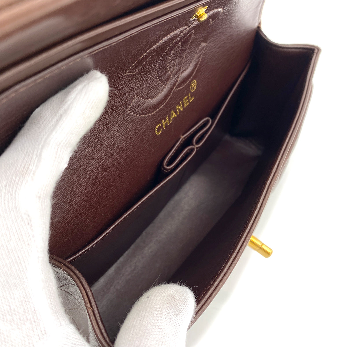CHANEL VINTAGE CLASSIC FLAP SMALL CHAIN SHOULDER BAG BROWN LAMB SKIN 90265598
