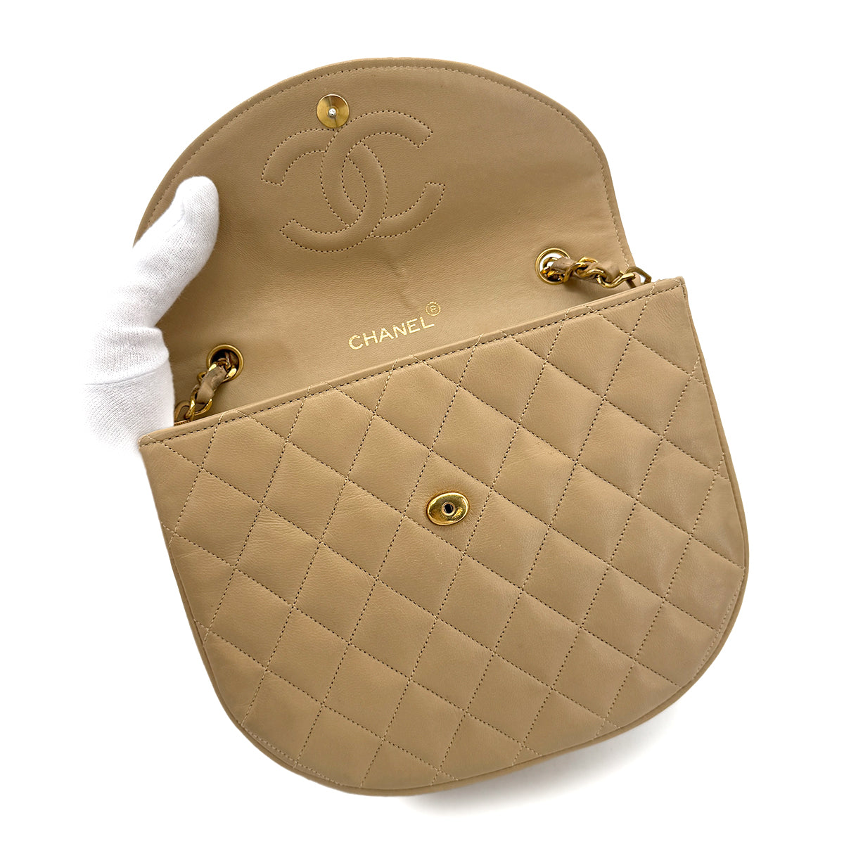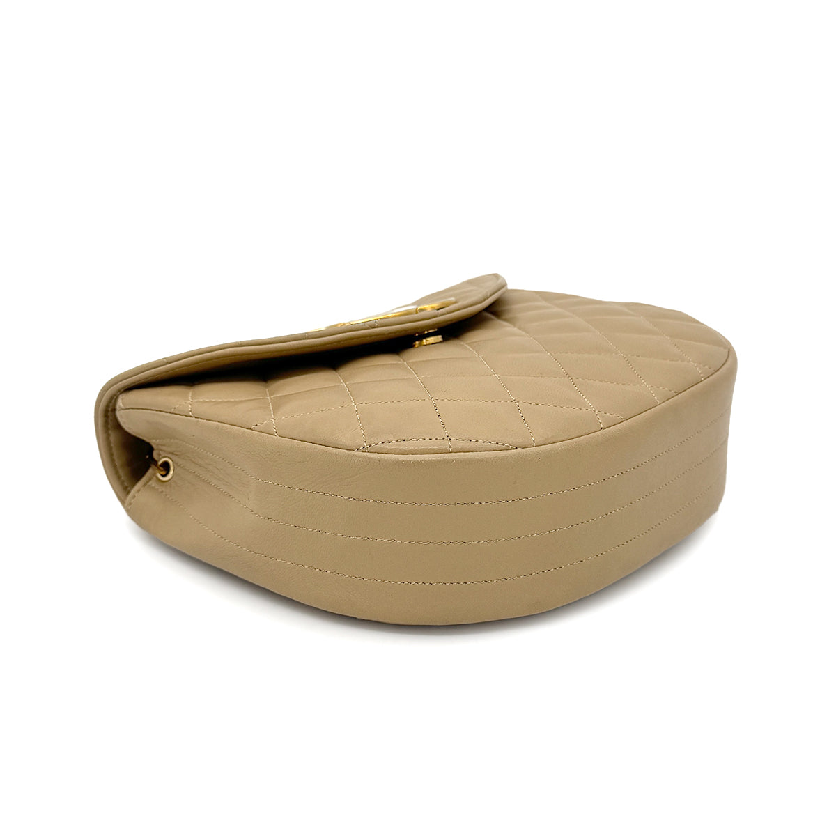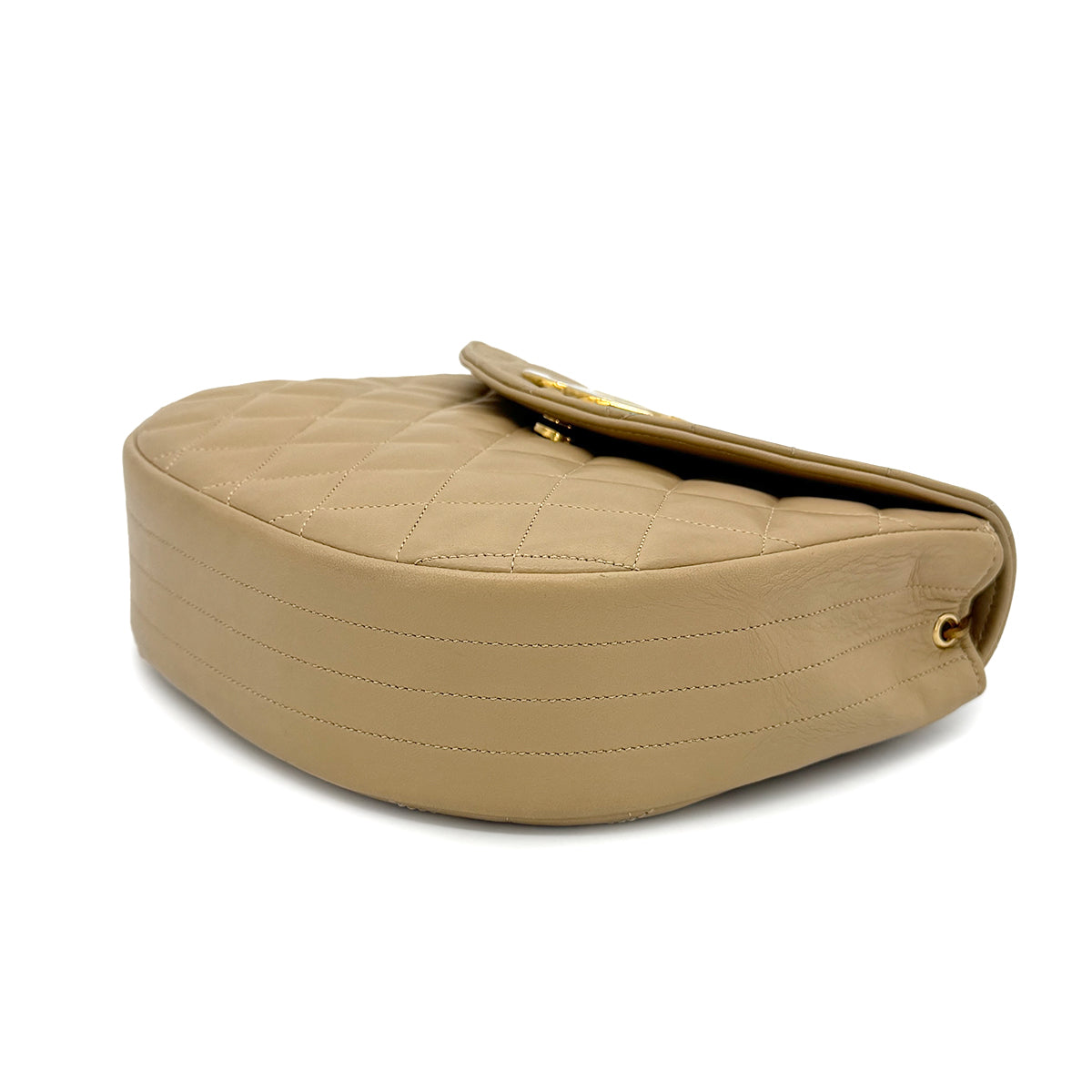 CHANEL VINTAGE BIG COCO HALF MOON CHAIN SHOULDER BAG BEIGE LAMB SKIN 90265885