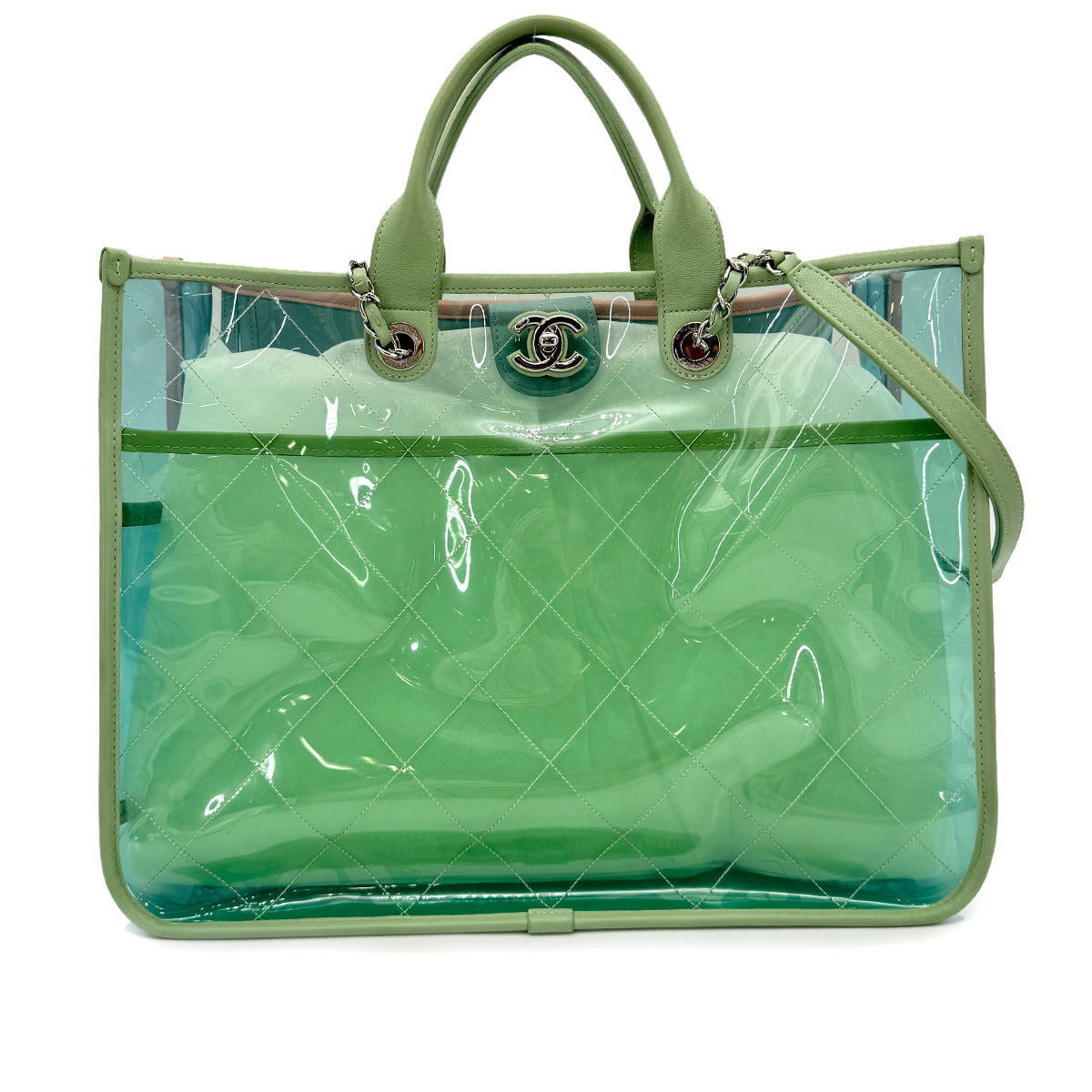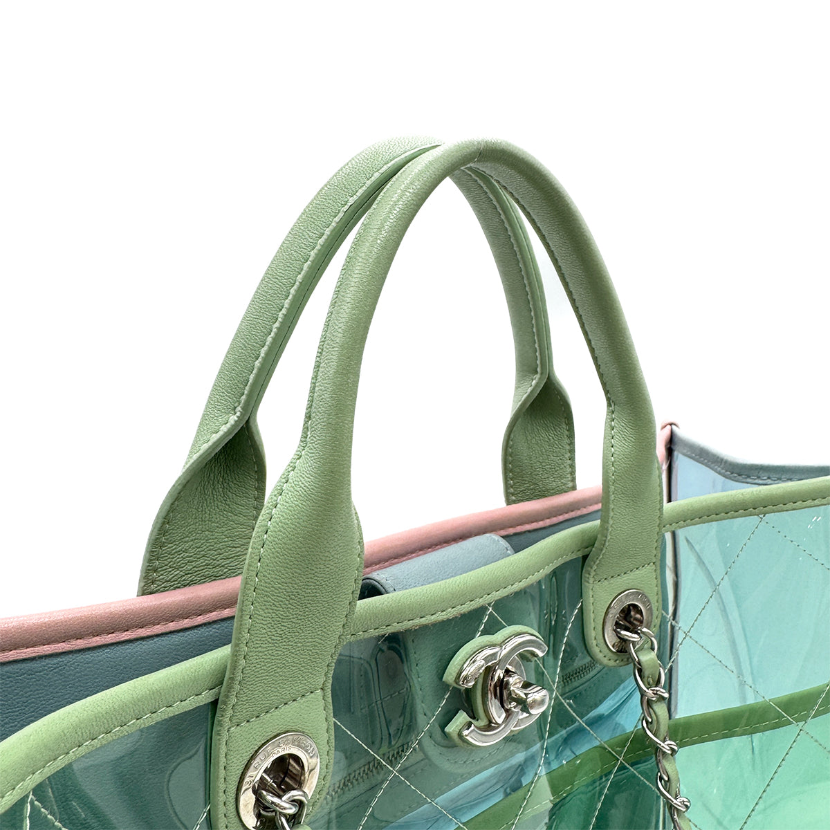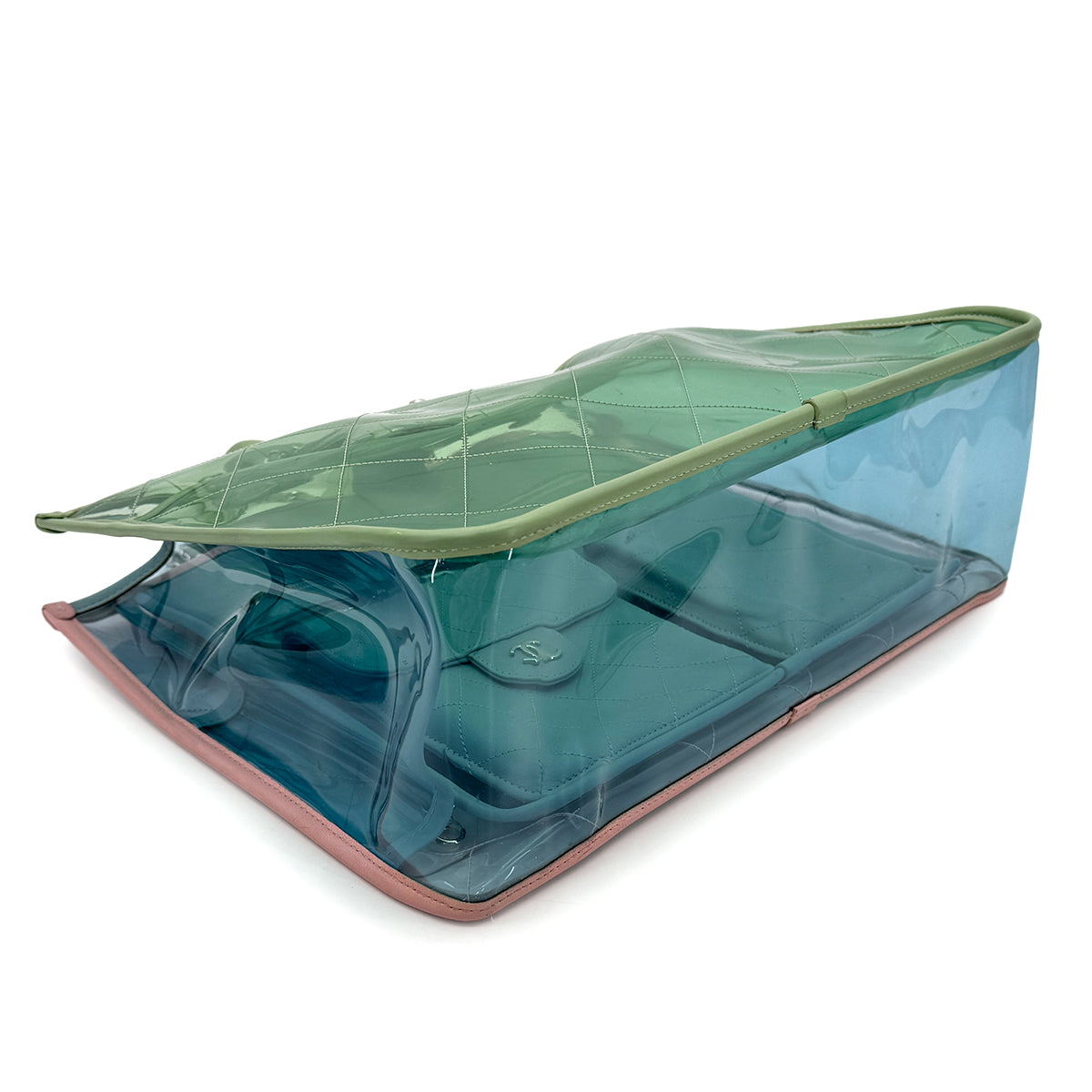 CHANEL COCO SPLASH TOTE BAG CLEAR GREEN BLUE VINYL LEATHER 90265916