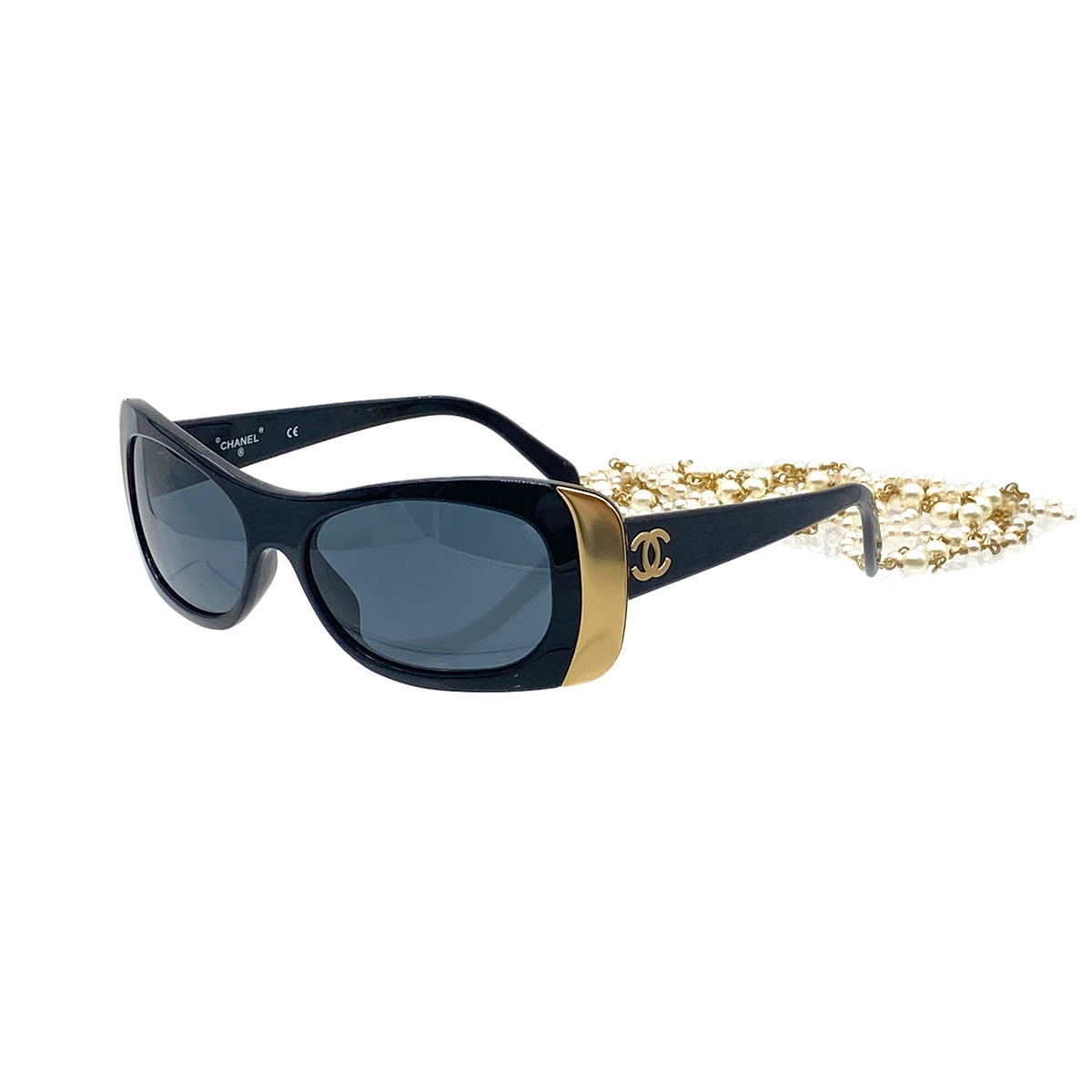 CHANEL SUNGLASSES COCOMARK FAUX PEARL NECKLACE BLACK EYEWEAR 90266155