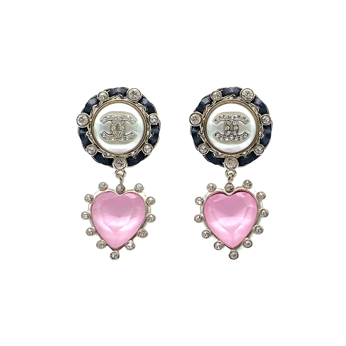 CHANEL EARRINGS COCOMARK SWING HEART RHINESTONE ACCESSORY A21V 90266442