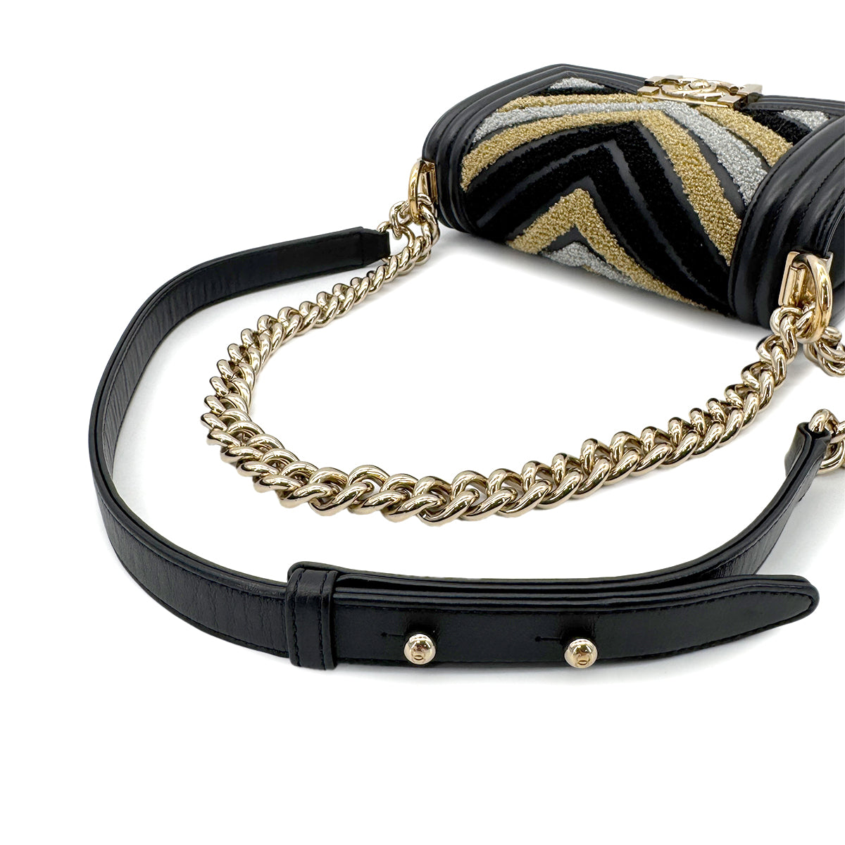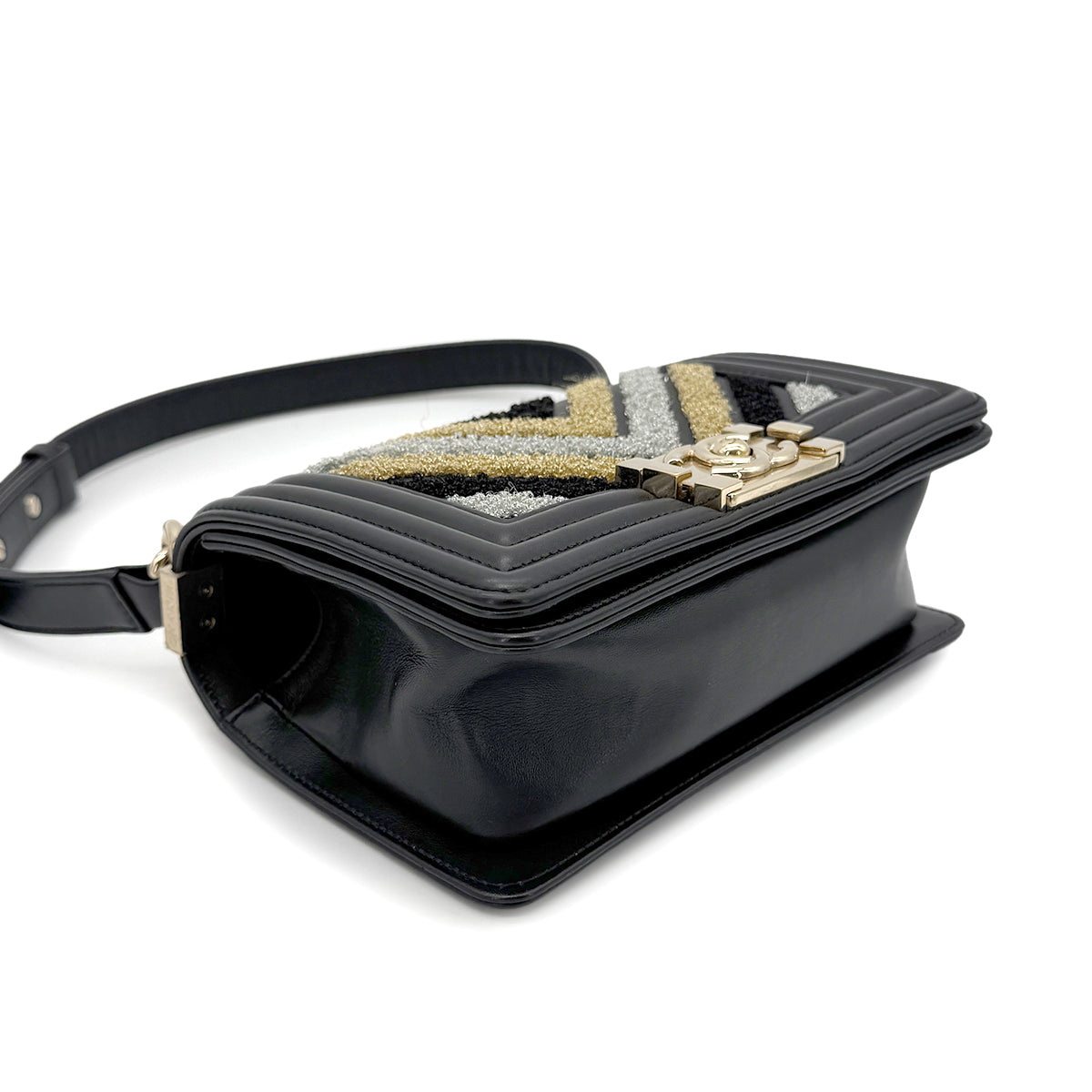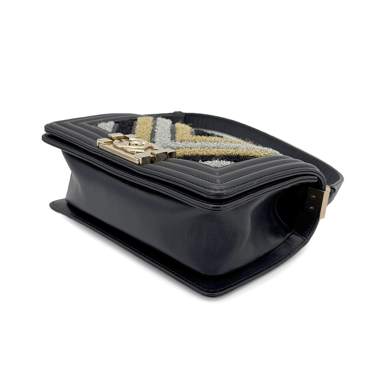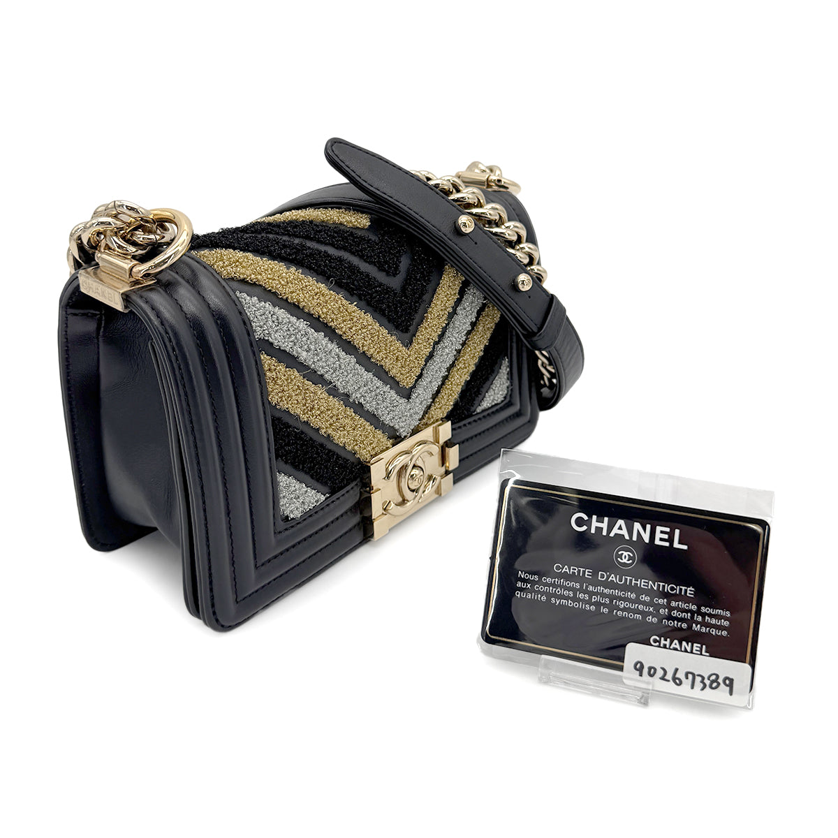 CHANEL BOYCHANEL SMALL CHAIN SHOULDER BAG BLACK LAMB SKIN 90267389