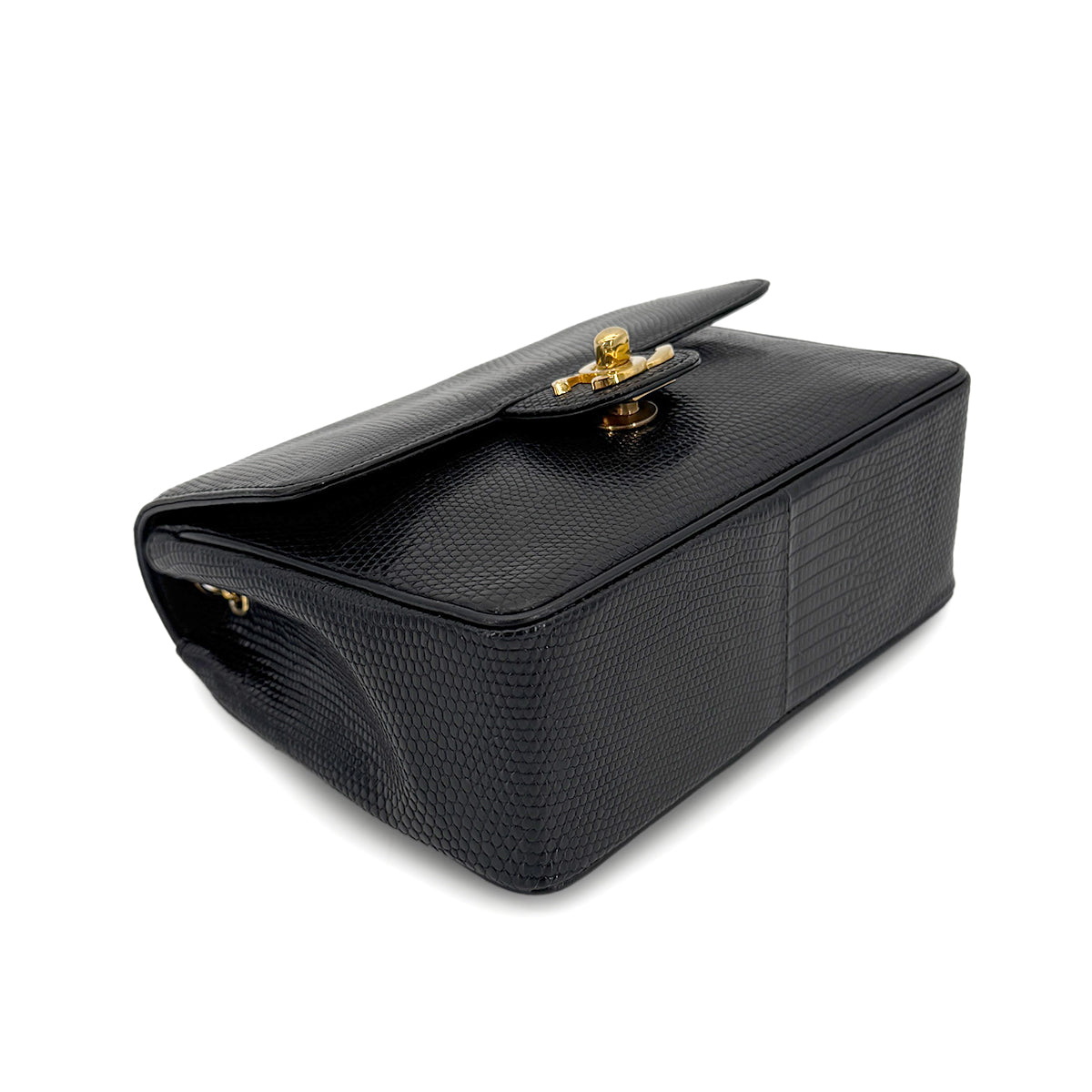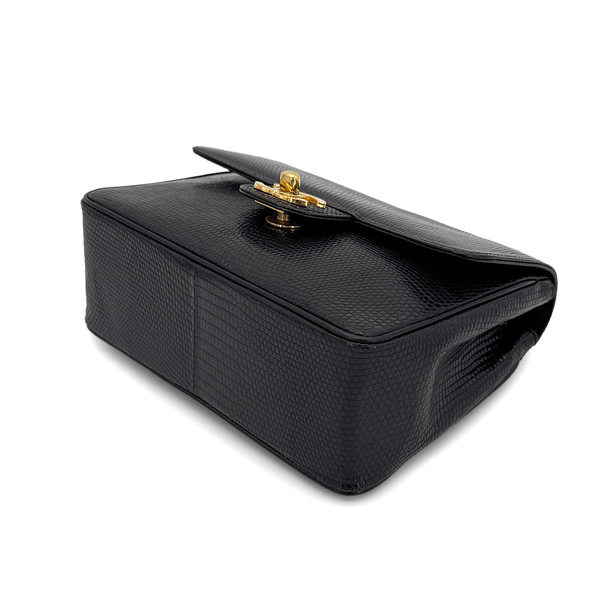 CHANEL VINTAGE MINI SQUARE 17 CHAIN SHOULDER BAG BLACK LIZARD 90267413