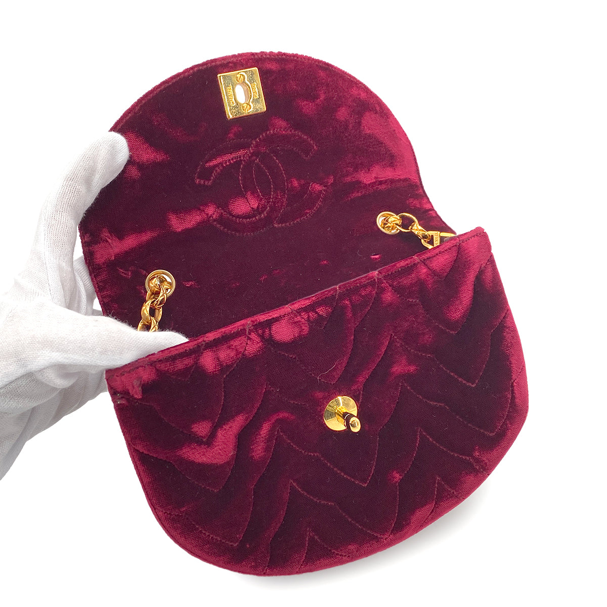 CHANEL VINTAGE MATELASSE BIJOU CHAIN SHOULDER BAG RED VELOR 90267779