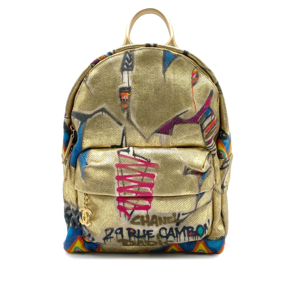 CHANEL BACK PACK GRAFFITI COCOMARK GOLD CANVAS 90268329