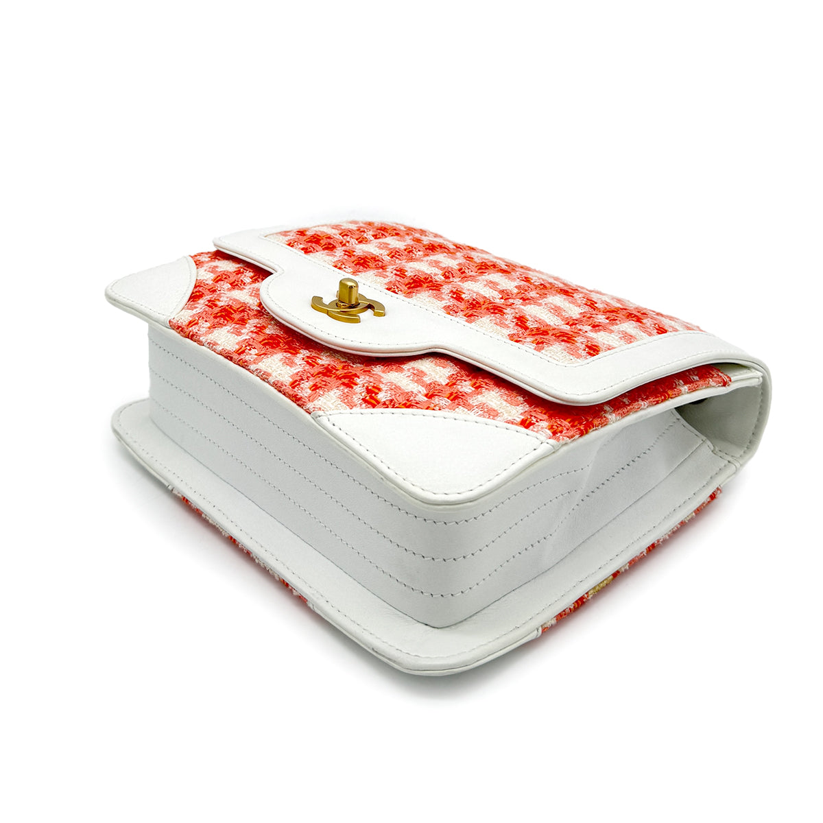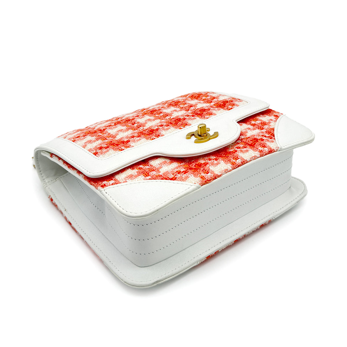 CHANEL VINTAGECHAIN SHOULDER BAG WHITE ORANGE TWEED LEATHER 90268877