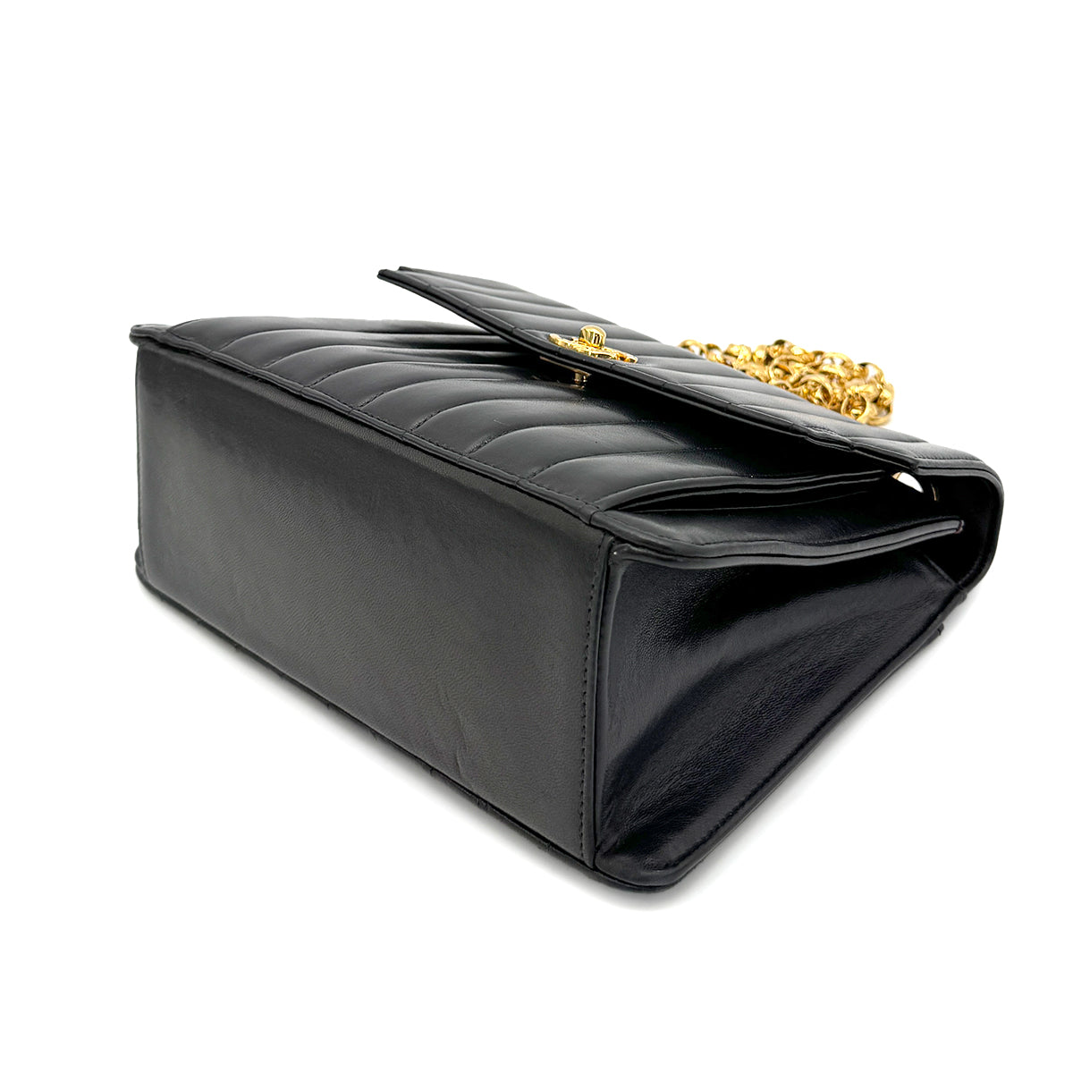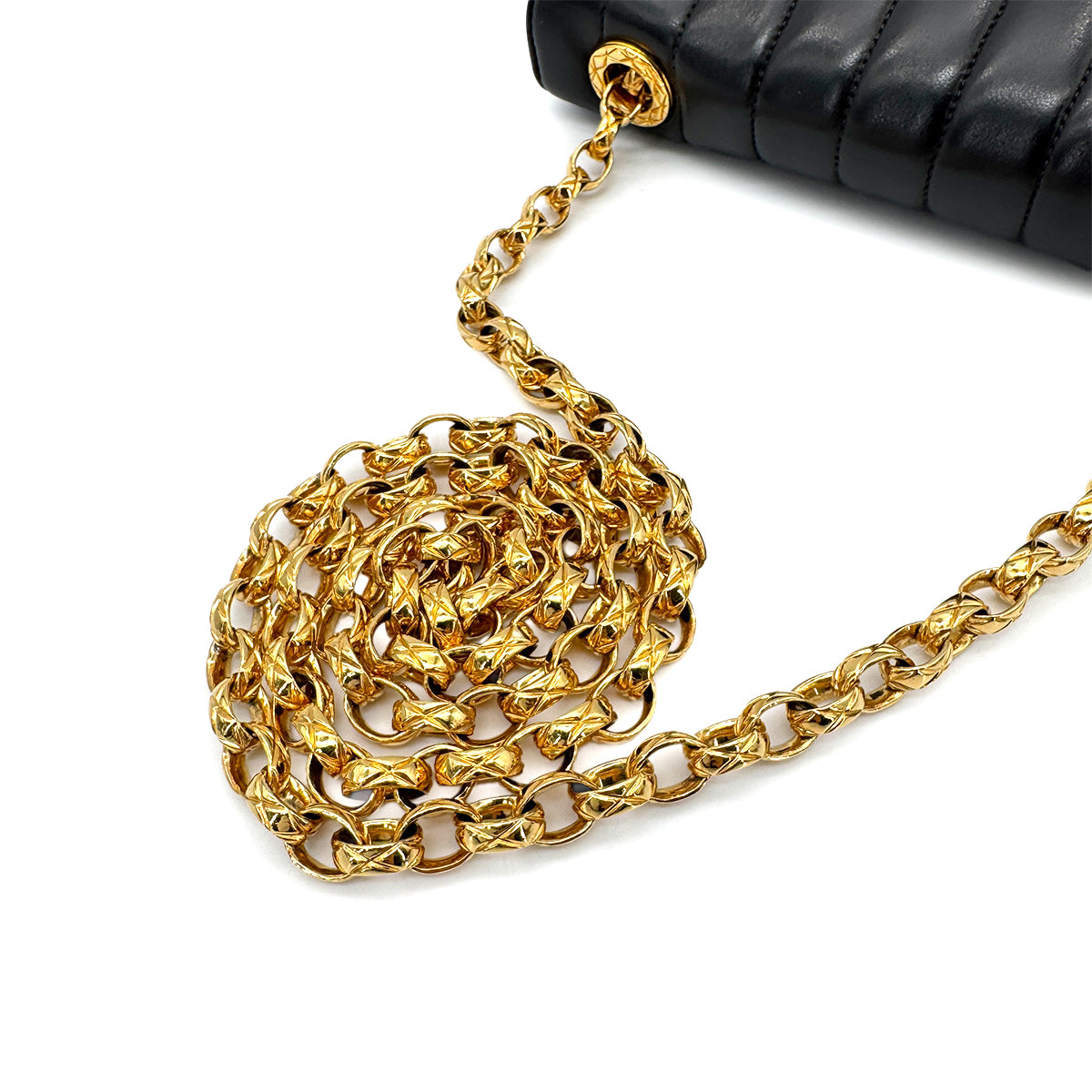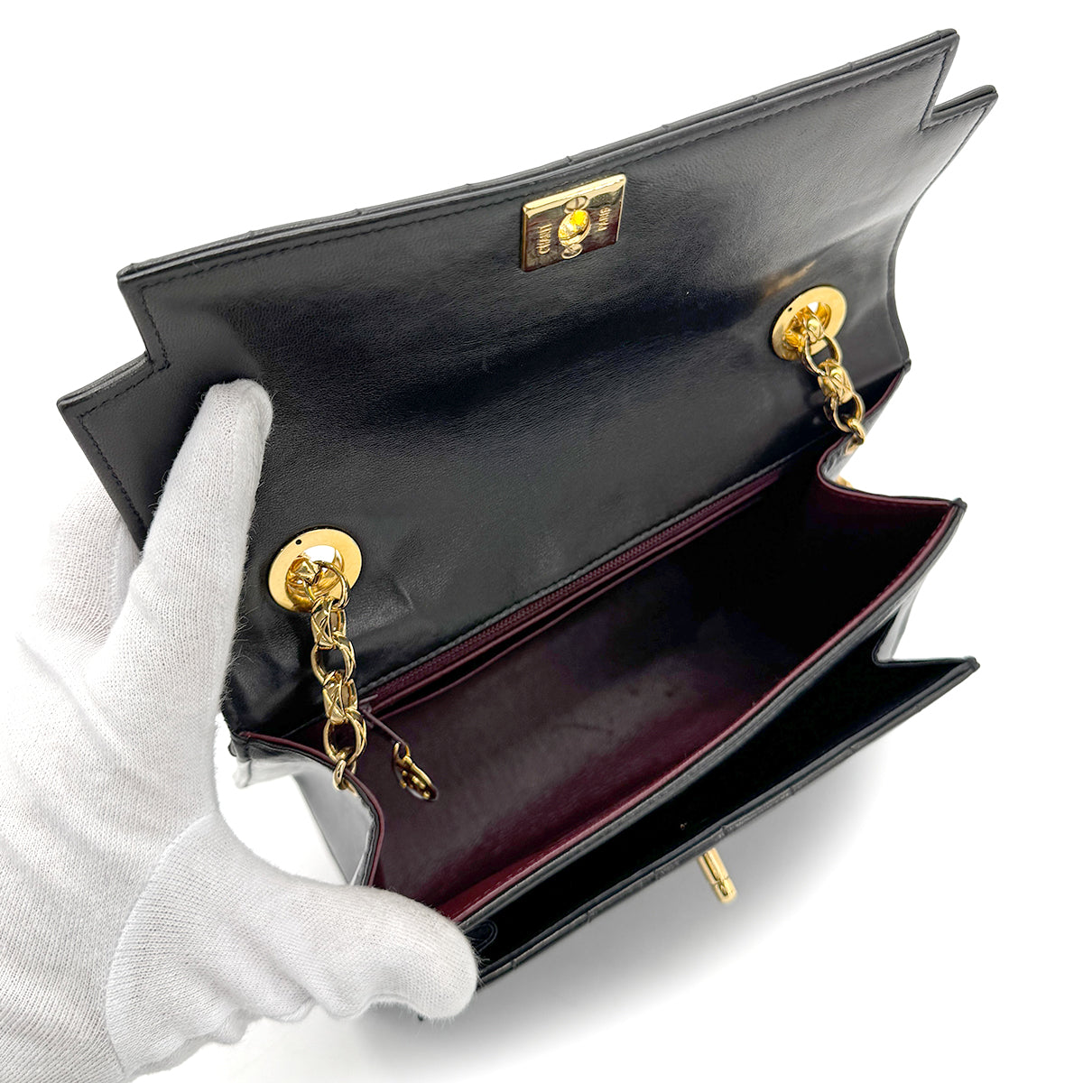 CHANEL VINTAGE MADEMOISELLE BIJOU CHAIN SHOULDER BAG BLACK LAMB SKIN 90269035