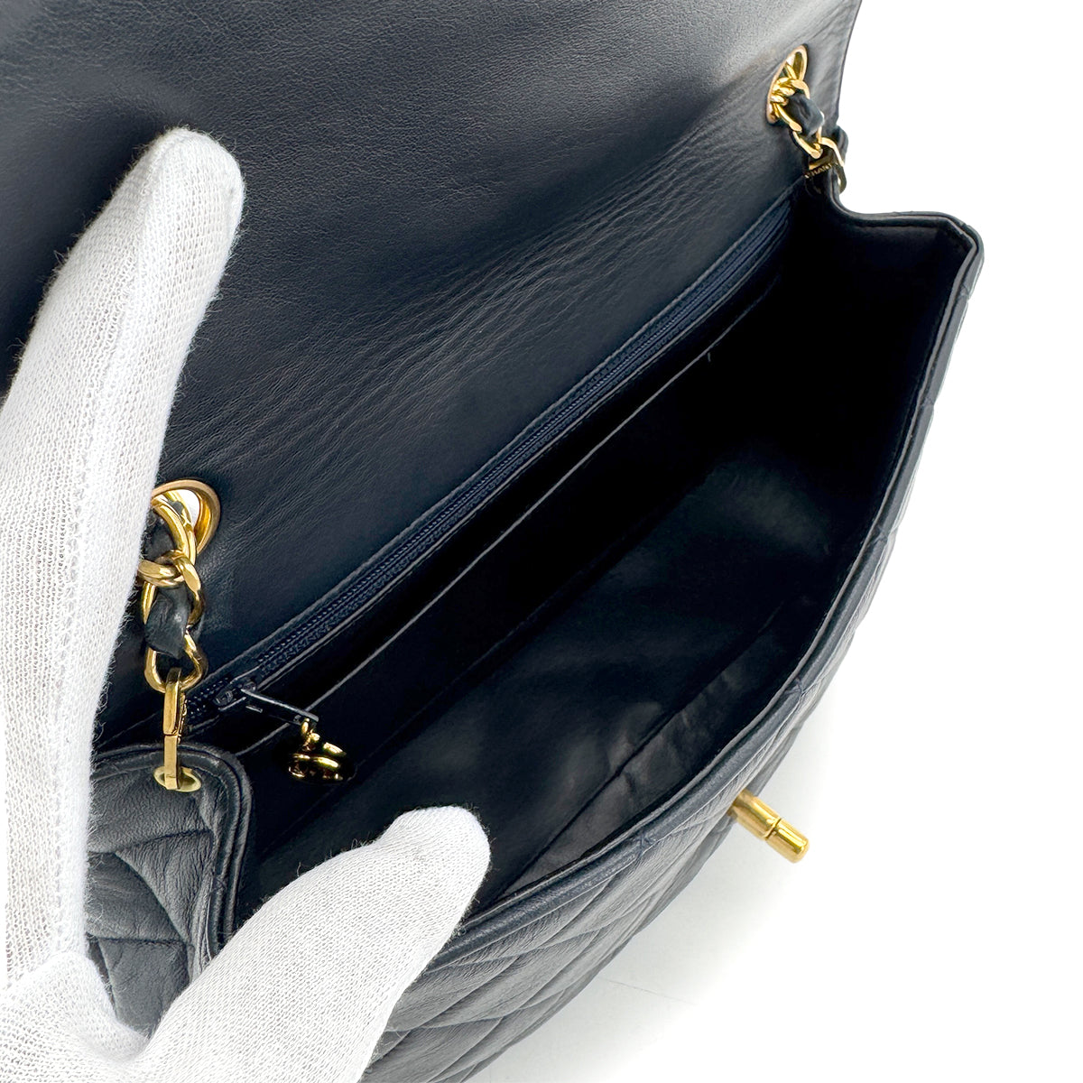 CHANEL VINTAGE MATELASSE CHAIN SHOULDER BAG NAVY LAMB SKIN 90269101