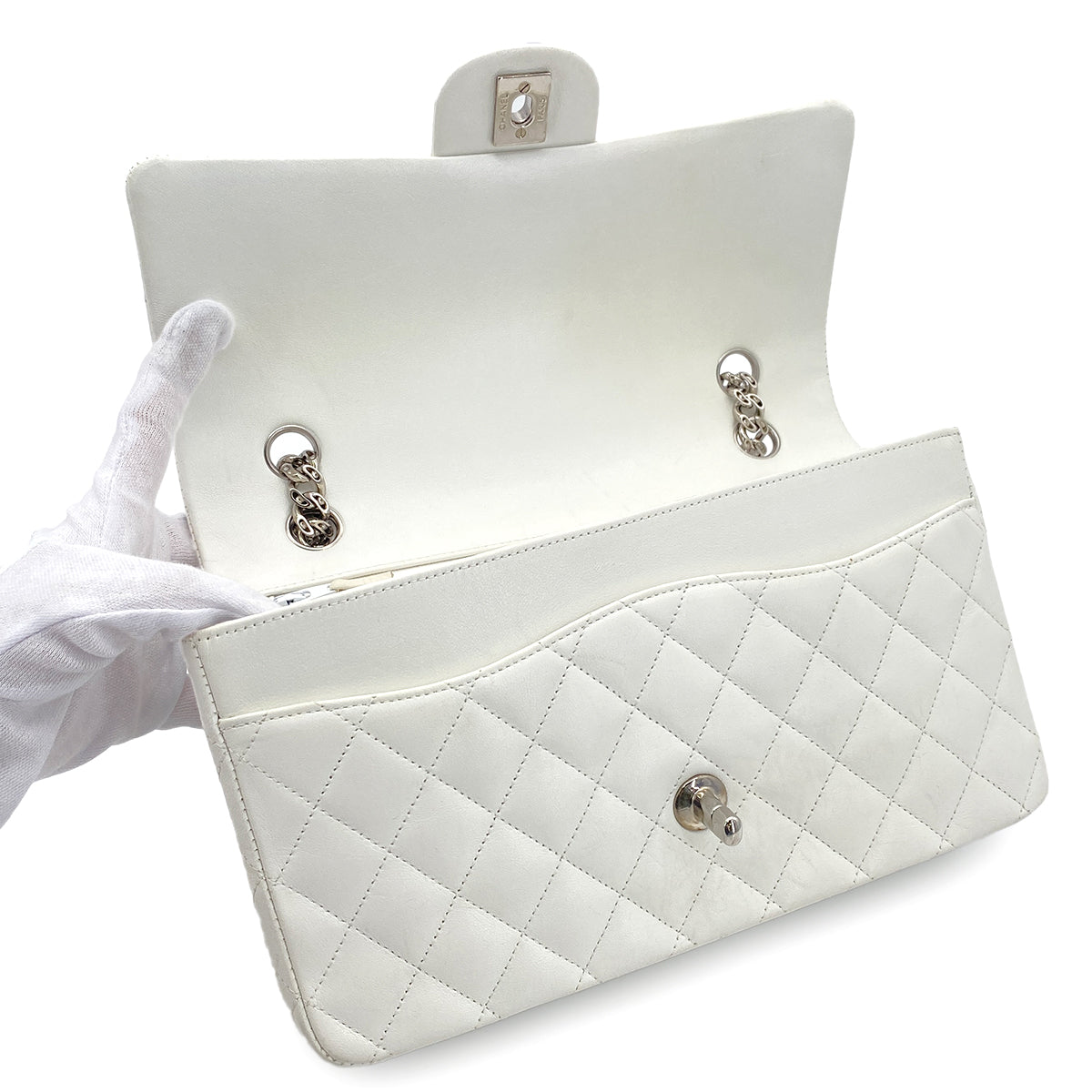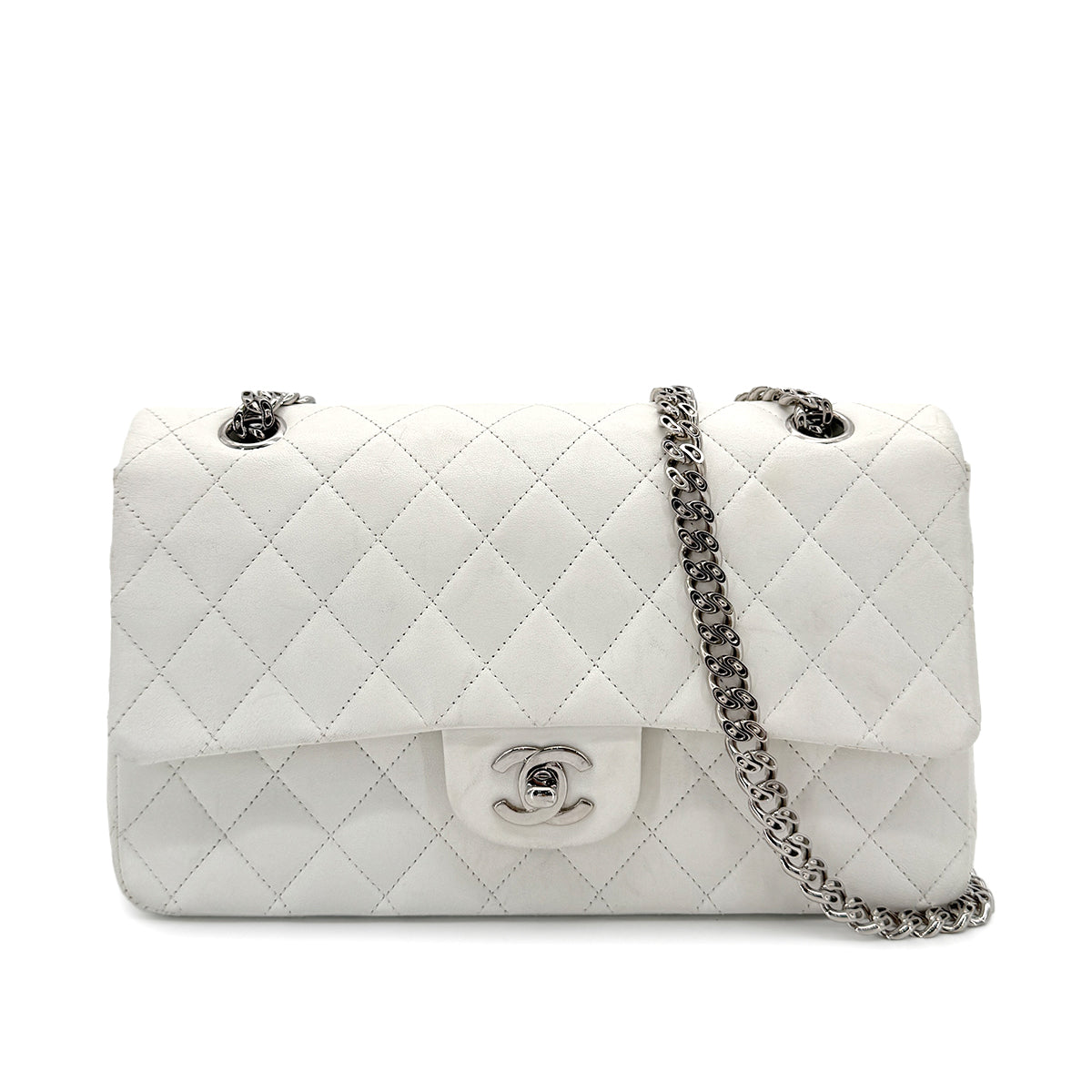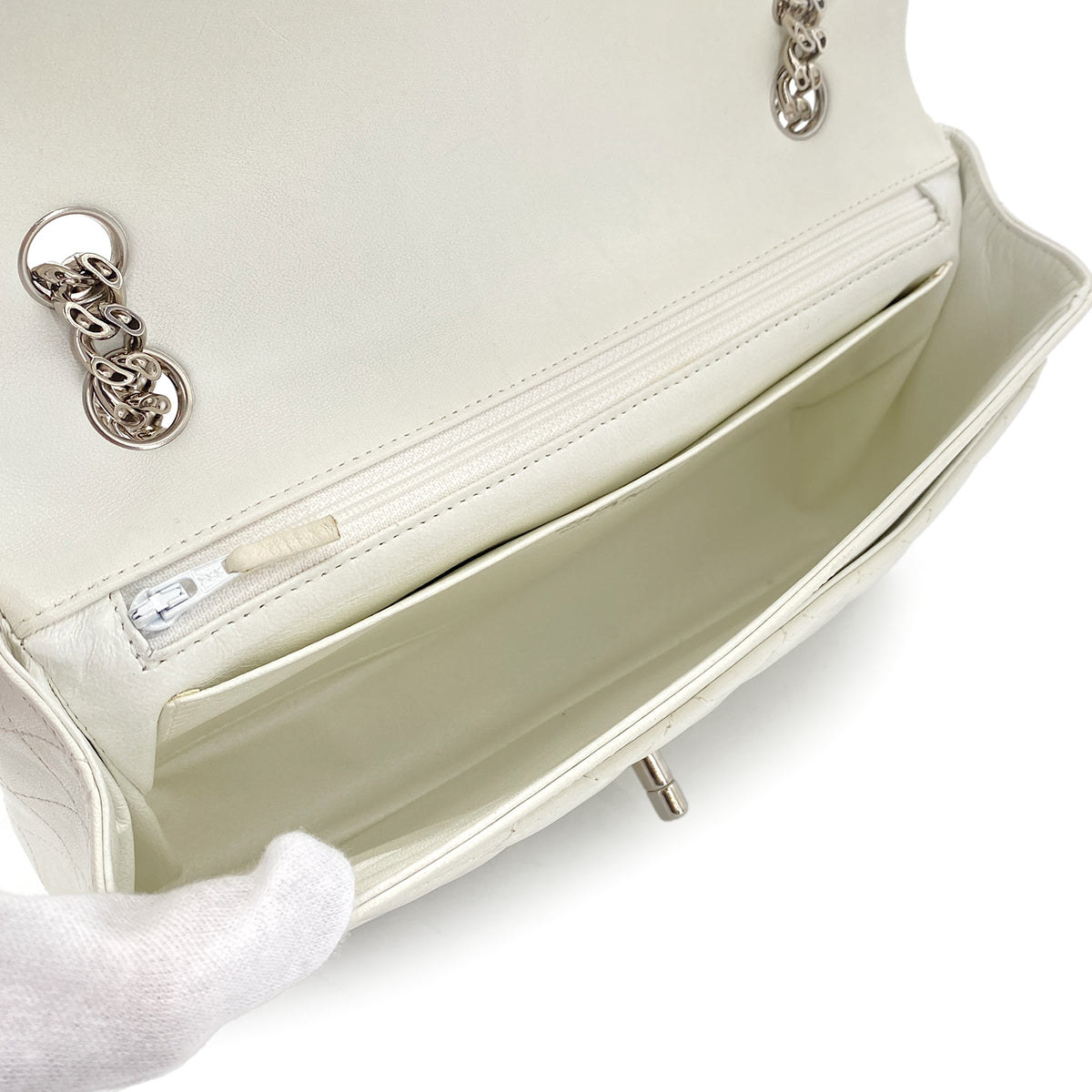 CHANEL CHAIN SHOULDER BAG WHITE LAMB SKIN 90269185