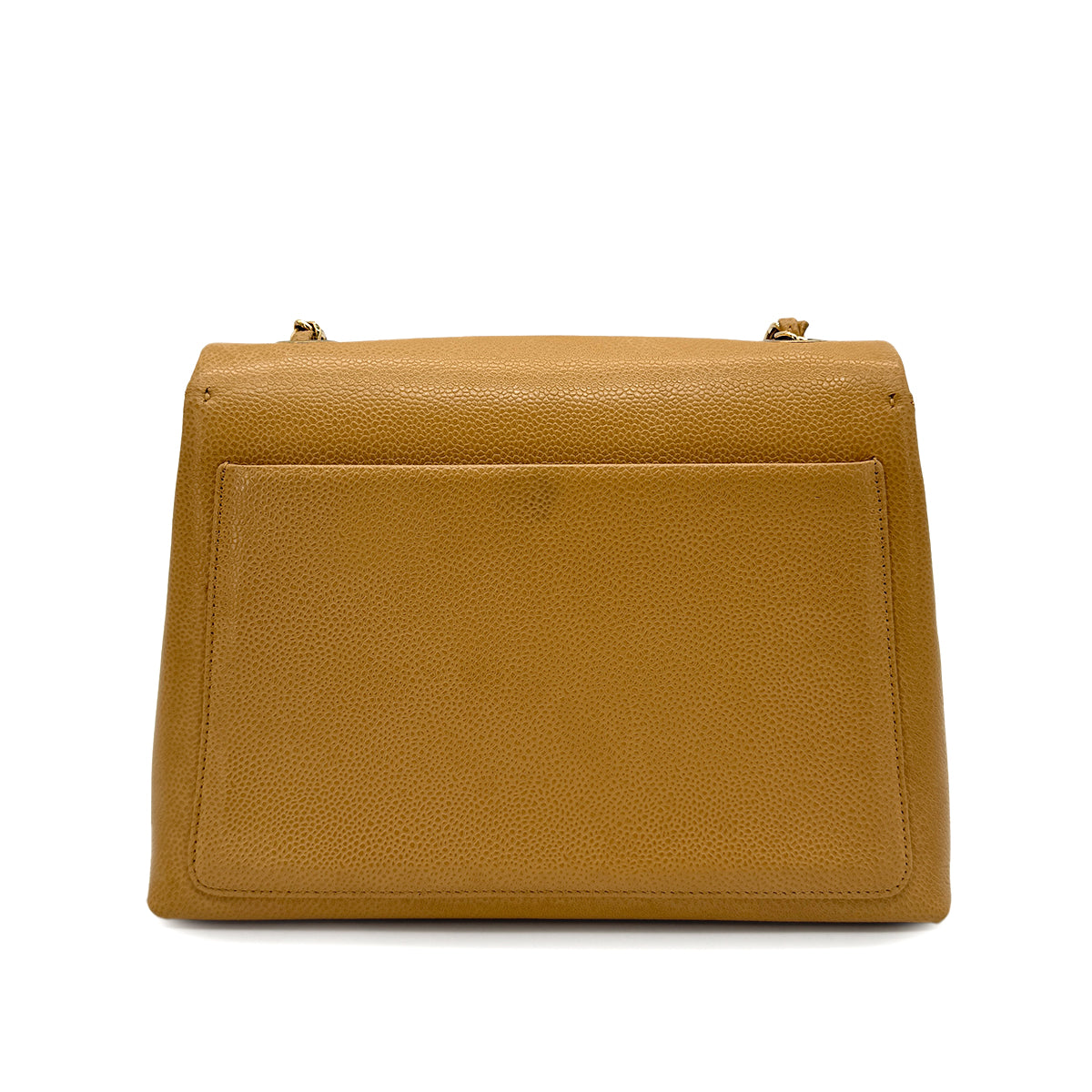 CHANEL VINTAGE CHAIN SHOULDER BAG BEIGE CAVIAR SKIN 90269239